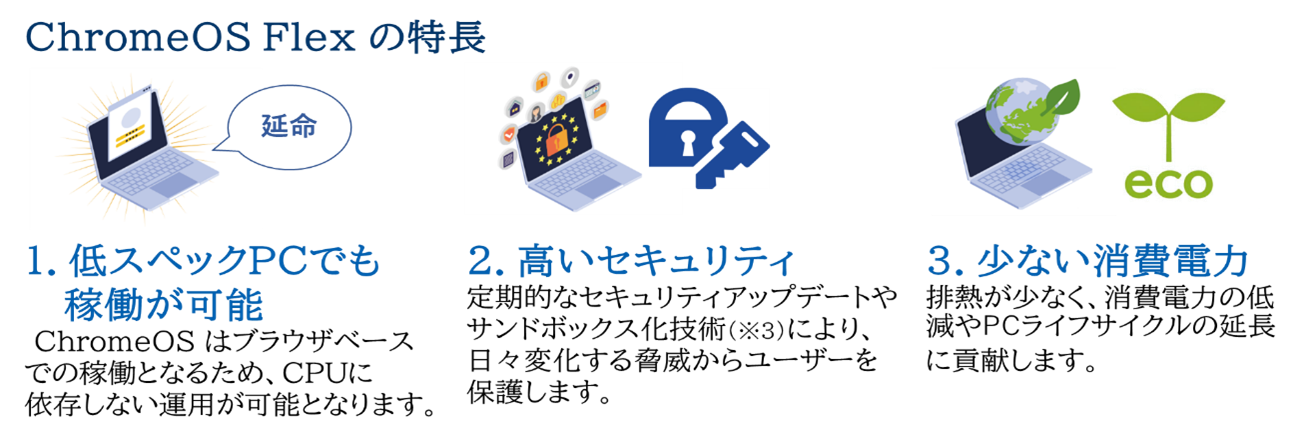 (※1) ChromeOS Flex のインストール手順等をまとめた「 ChromeOS Flex 展開手順書」の公開をしております。