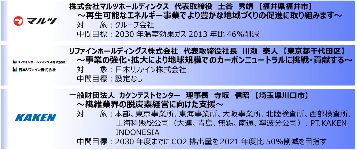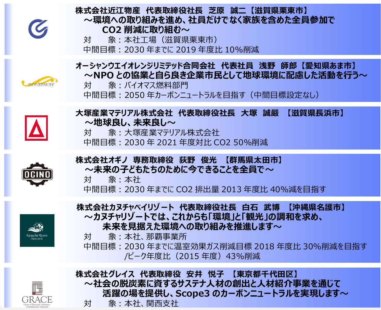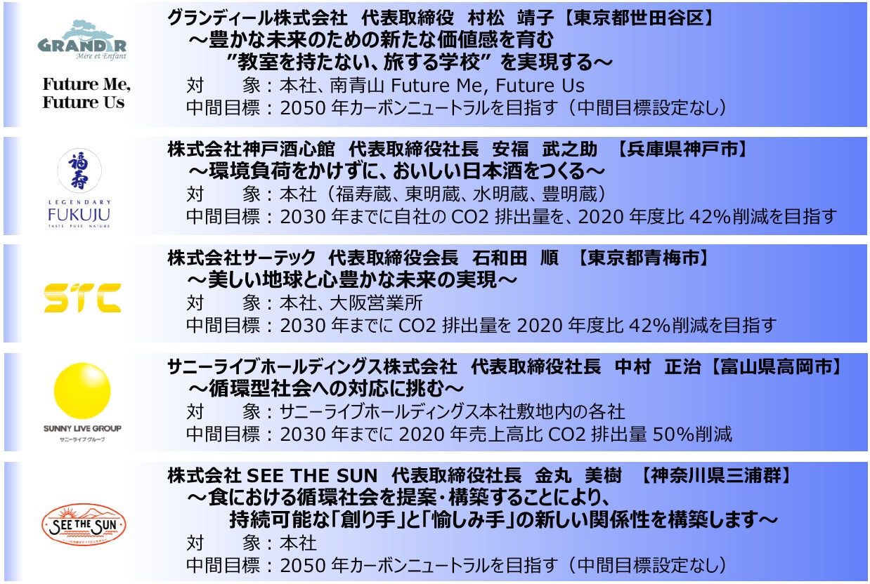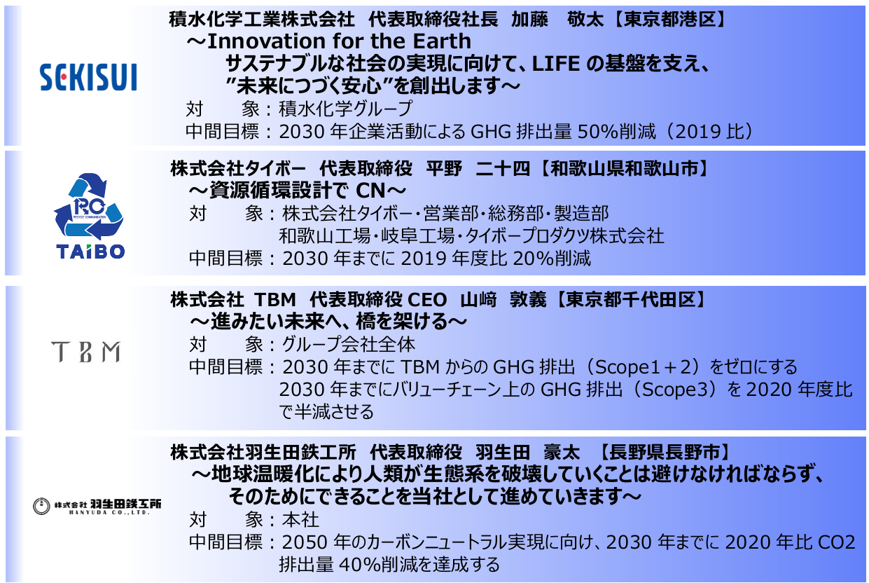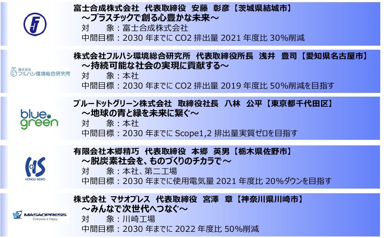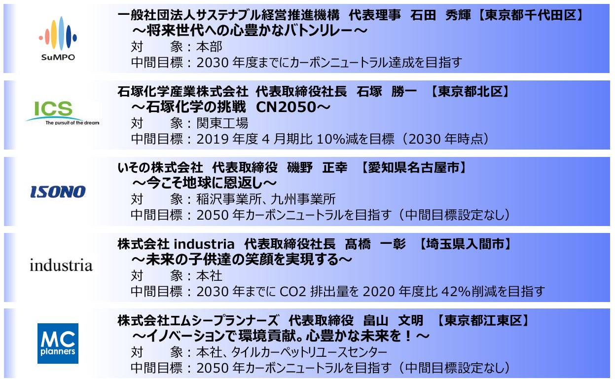 SuMPO/カーボンニュートラル一斉行動宣言 賛同企業個社別中間目標一覧(31社)※敬称略