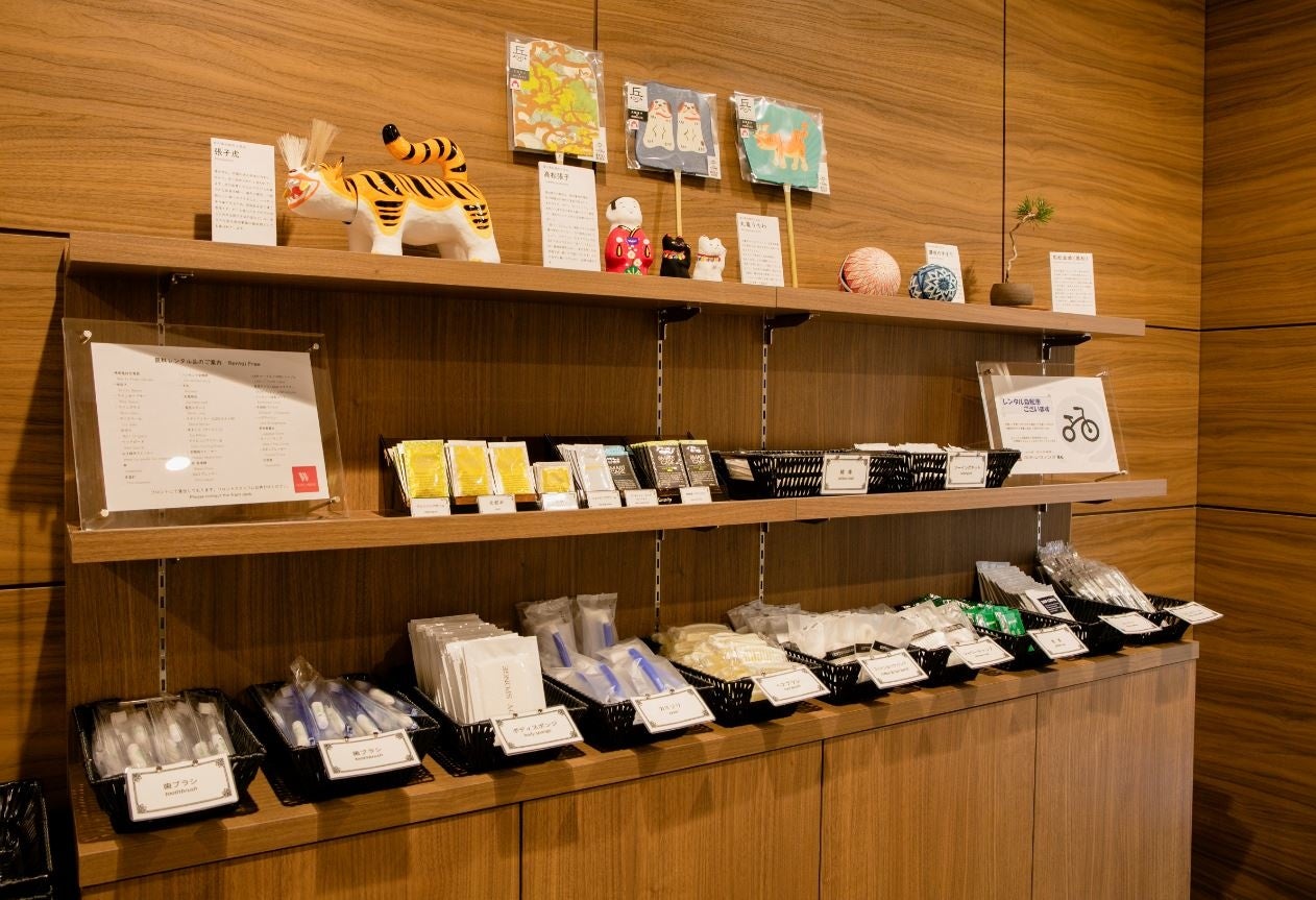 促進等に関する法律」に伴い、ホテル事業における特定プラスチック使用製品等の使用量削減に対応するため、アメニティバイキングを導入いたします。歯ブラシ・カミソリ・ブラシなどを含むアメニティ類は【客室設置】ではなく、フロントロビーに設置する【アメニティバイキング】からお客様ご自身で必要なものだけお取りいただくスタイルに変わります。(※)