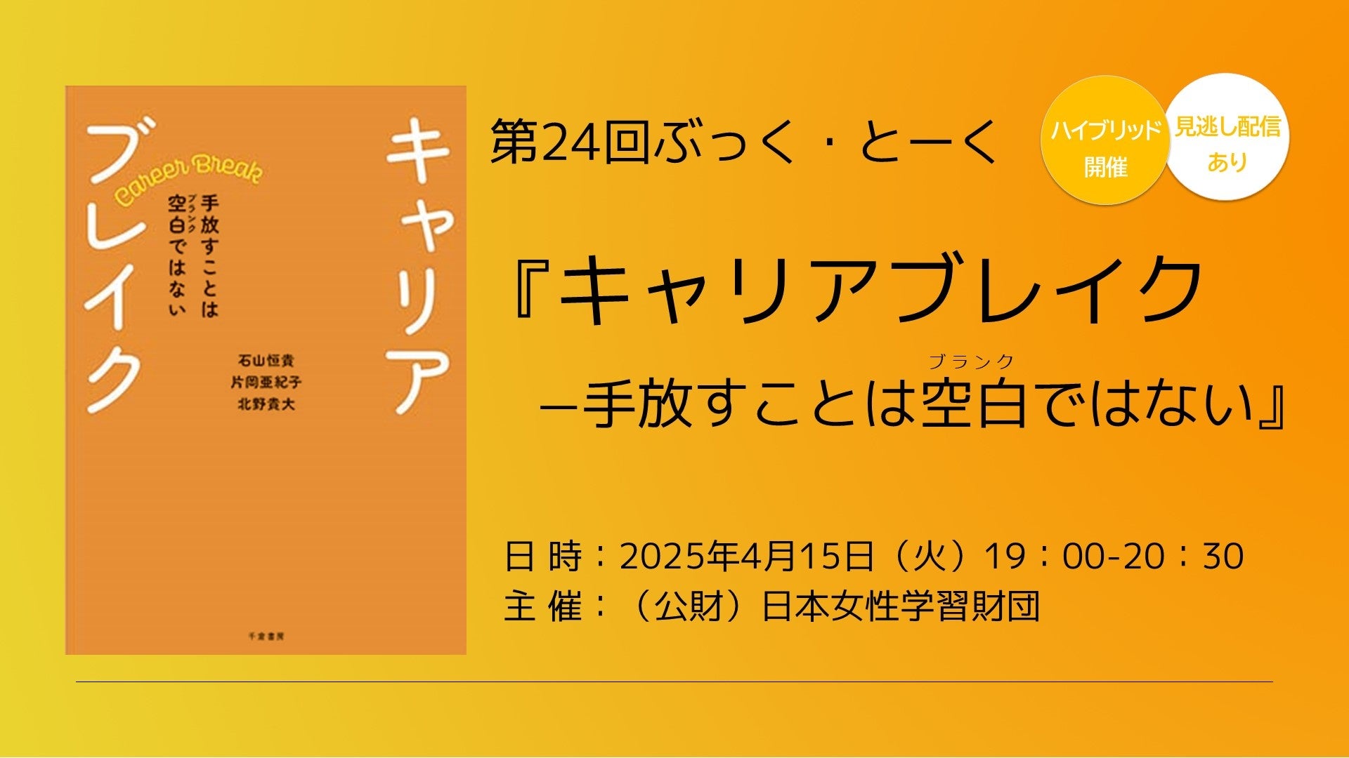 〔2025年4月15日:ハイブリッド開催〕第24回ぶっく・とーく『キャリアブレイクー手放すことは空白ではない』