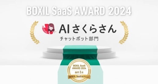 また、「AIさくらさん」は、スマートキャンプ株式会社が今最も評価されているSaaSを表彰する「BOXIL SaaS AWARD 2024」においてBOXIL SaaSセクションチャットボット部門で1位に選出されました。また、同日に発表された「BOXIL SaaS AWARD Spring 2024」でチャットボット部門の「Good Service」「サービスの安定性No.1」「機能満足度No.1」「使いやすさNo.1」に、併せて選出されています。