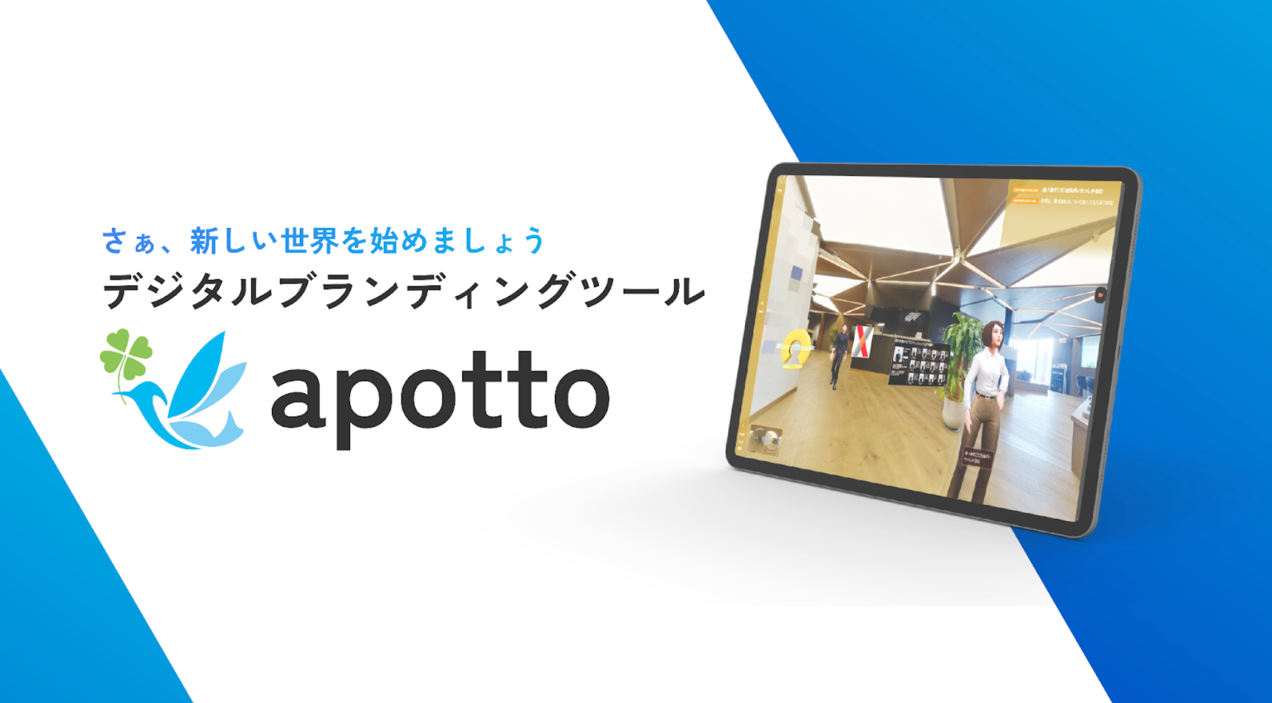 apottoとはオウンドメディアに埋め込むだけで見ることができる、「360度空間」×「デジタルコンテンツ」で、その場所に実際にいるような体験を提供します。apottoはノーコードでアバターから画像や動画・関連リンクまで埋め込みが可能。採用サイトへ誘導し、エントリー数の増加も期待できます。