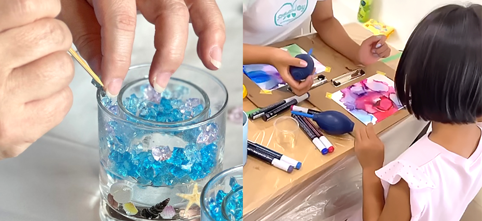 今回、初開催となる「ART WEEK」では、”自分だけの海”を作ることができるレジンアートや、植物由来のインクで短期間タトゥーを楽しめるジャグアタトゥー、幻想的な色模様に癒されるアルコールインクアートなど、5名の沖縄県内在住アーティストによるワークショップをお楽しみいただけます。