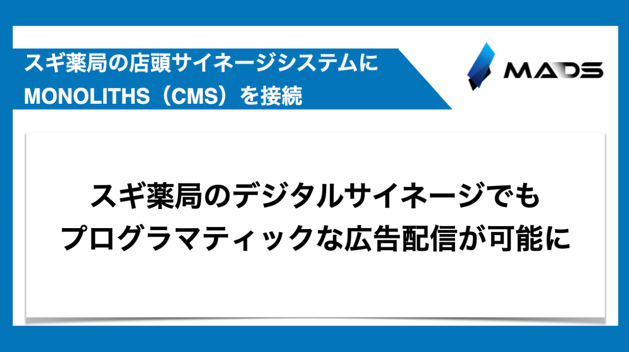 スギ薬局の店頭サイネージシステムにMONOLITHS(CMS)を接続 -プログラマティックな広告配信が可能に-