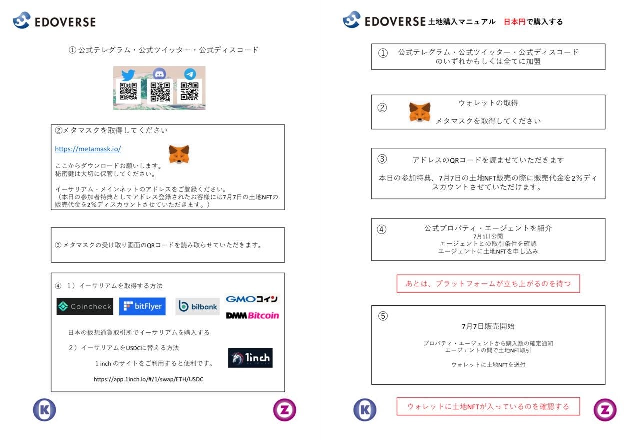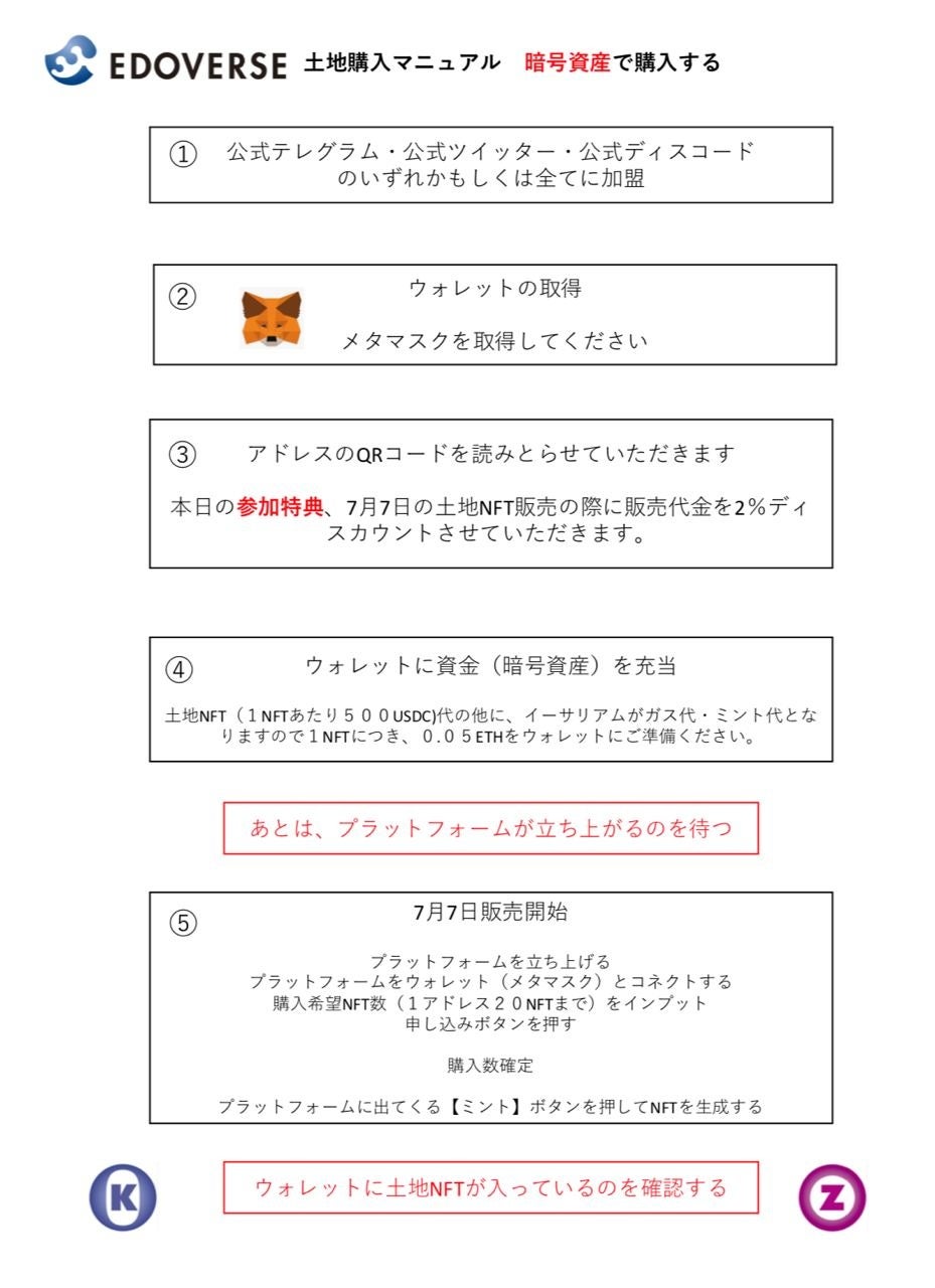 7月7日に先行販売される江戸バースの土地NFTの購入方法の説明