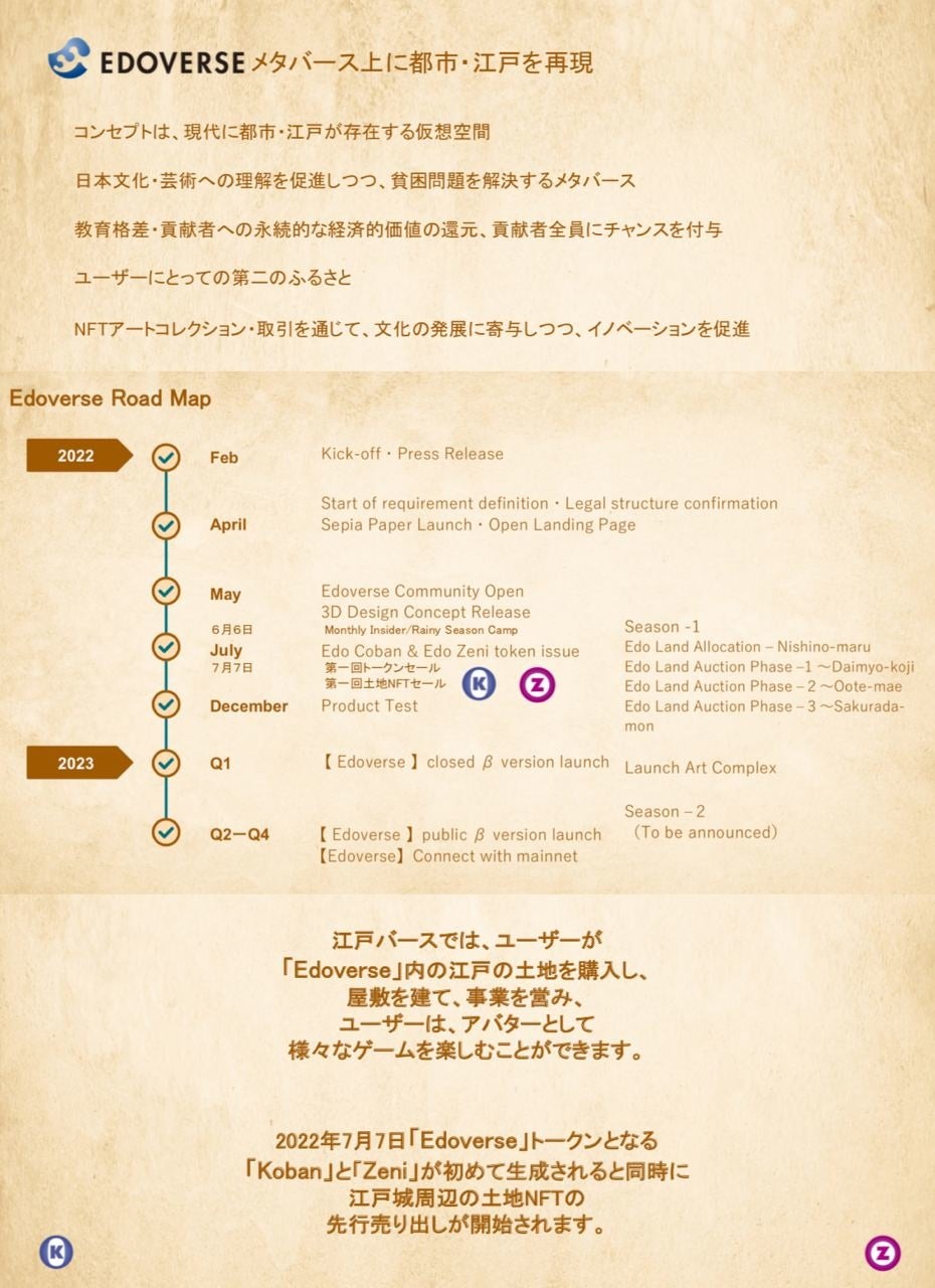 第1回Edoverse土地NFT販売開始及び第1回トークンセール実施予定。