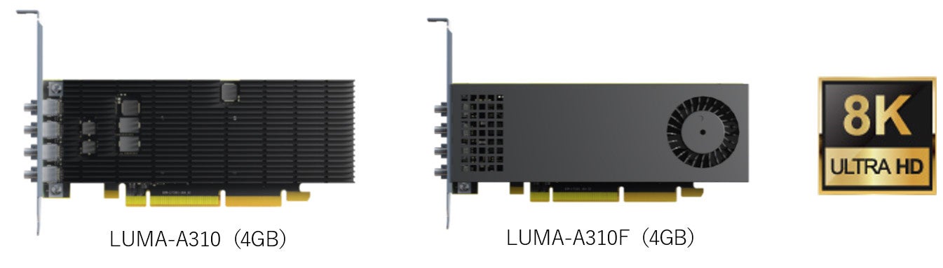 今回は、同シリーズより4GBモデル『LUMA-A310』および『LUMA-A310F』をラインナップします。いずれもInter Arc GPUを搭載し、1枚で最大8K×2系統、または4K×4系統出力に対応しています。6GBモデル『LUMA-A380』も後日発売予定です。
