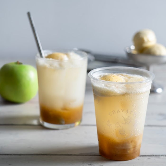 長野県小布施町で栽培される青りんご「ブラムリーアップル」を使用し、数種のスパイスと香り豊かなクオリティーシーズン・ウバを合わせて、青りんごの芳醇な香りと濃厚で爽やかな味わいを楽しめる、アップルティーシロップにしました。毎年この季節にしか出会えない、国産のブラムリーアップルを、今年はバニラアイスを浮かべたクリームソーダで、お楽しみいただけます。