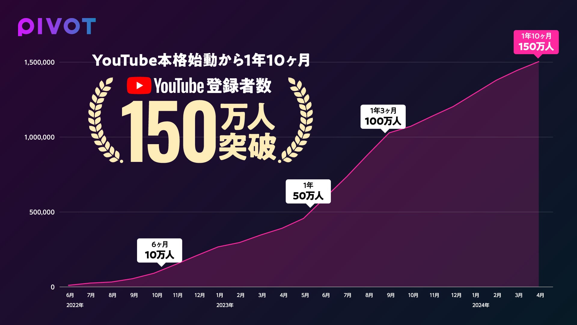 PIVOT株式会社(本社:東京都渋谷区、代表取締役:佐々木紀彦、以下PIVOT)が運営する「PIVOT」YouTube公式チャンネルの登録者数が2024年4月6日に150万人を超えたことをお知らせします。2022年6月から本格始動し、累計再生回数は2.2億回となりました。