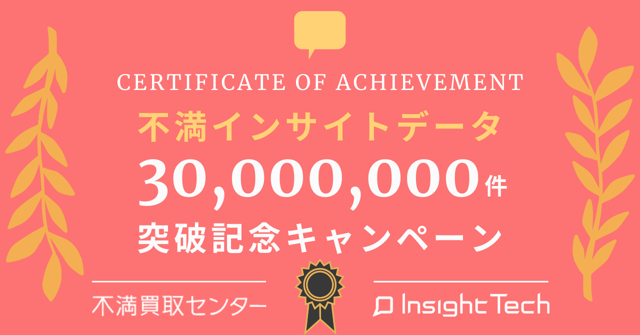 【不満買取センター】不満インサイトデータ累積3,000万件突破記念キャンペーン!