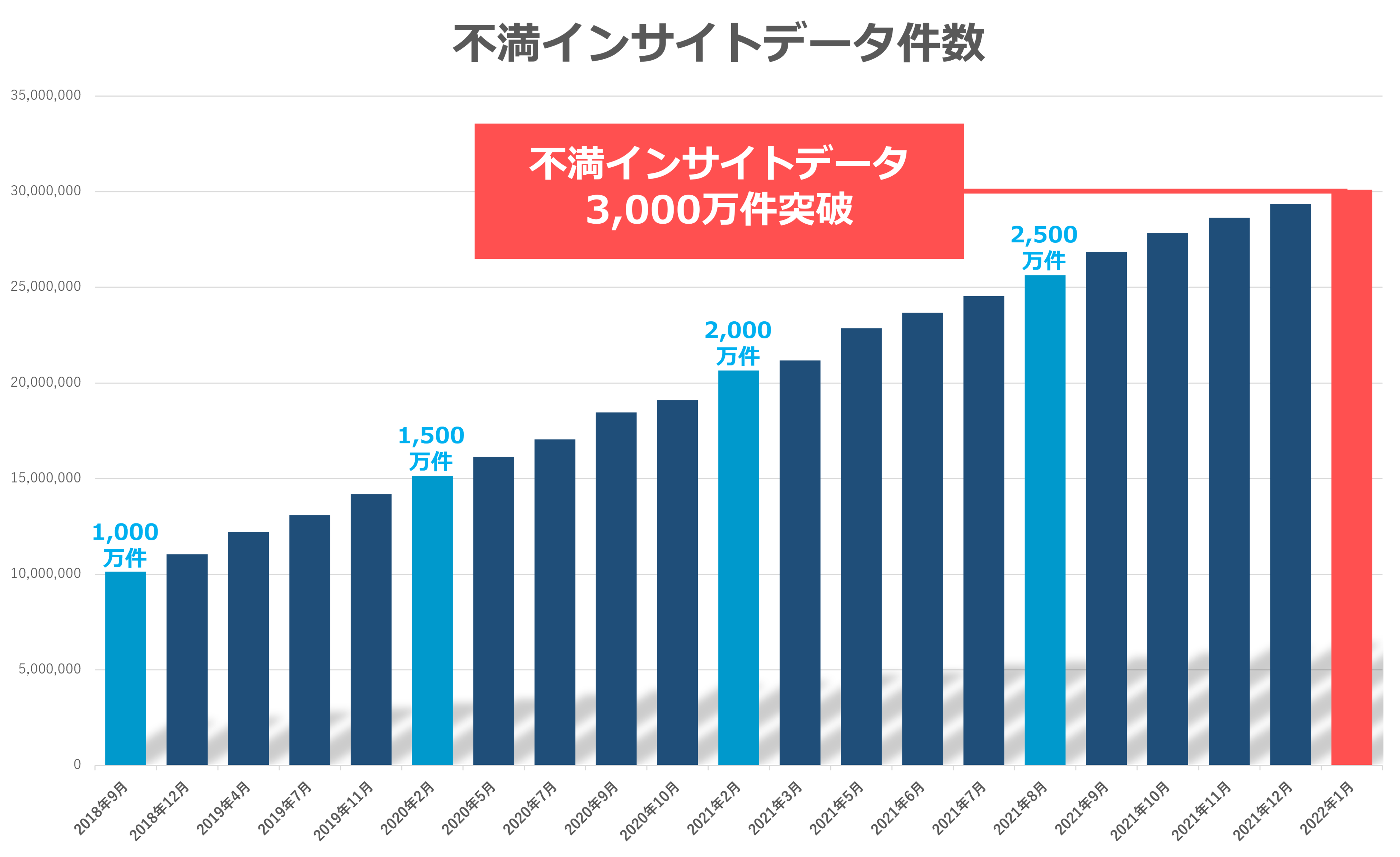 「不満買取センター」が蓄積する不満インサイトデータは2021年2月に2,000万件を突破しました。