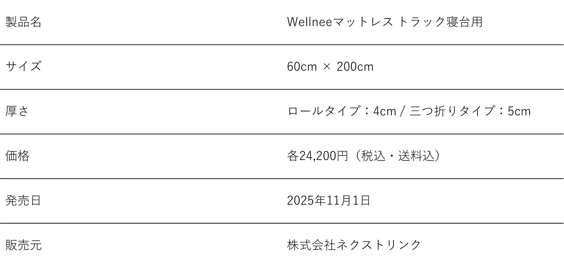 株式会社ネクストリンク(本社:東京都品川区、代表取締役:中村 訓秀)は、通気性・耐久性・清潔性に優れた新素材「ブレスエアー®」を使用したトラックの寝台専用マットレス「Wellneeマットレス トラック寝台用サイズ」を、2025年11月1日より販売開始します。