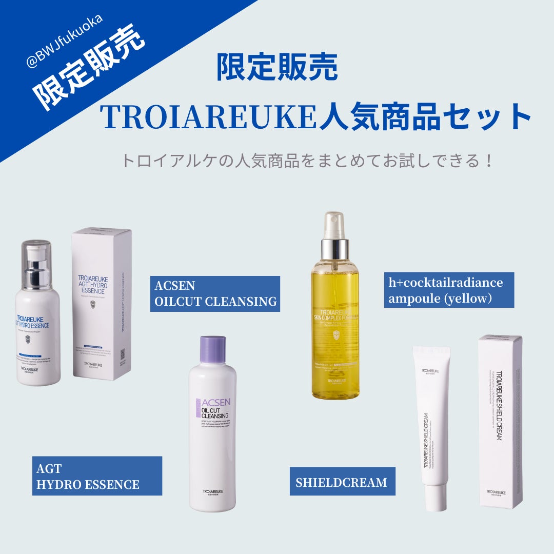 特に、1:719というキーワードを大切にしており「あくまでサロンやクリニックでのケアはたった月の1時間。1ヶ月720時間中719時間はホームケアで肌はつくられる」という考え方を重視し、サロン施術だけでなく家でもスキンケアを大切にしています。安全性と高い効果が評価され、韓国国内の美容クリニックや世界46ヵ国のサロンで愛用されている信頼のブランドです。お肌は一生ものだからこそ、TROIAREUKEはあなたに必要なケアをたくさんの選択肢の中からご提案します。