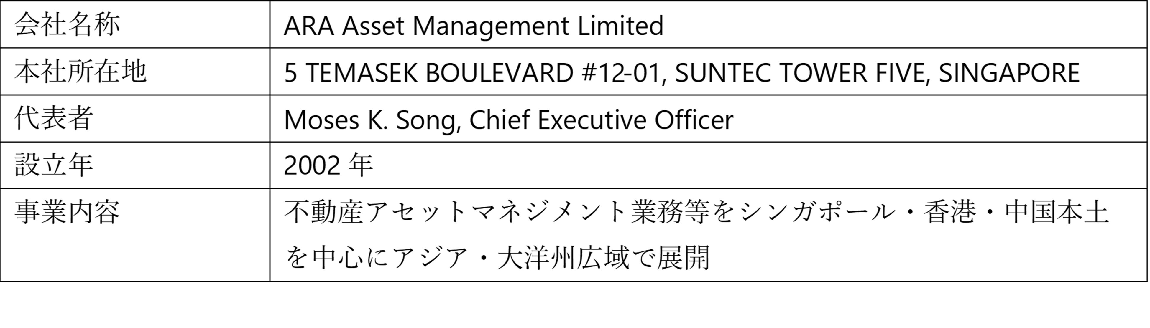 ARAが運用するシンガポール所在不動産への共同投資について
