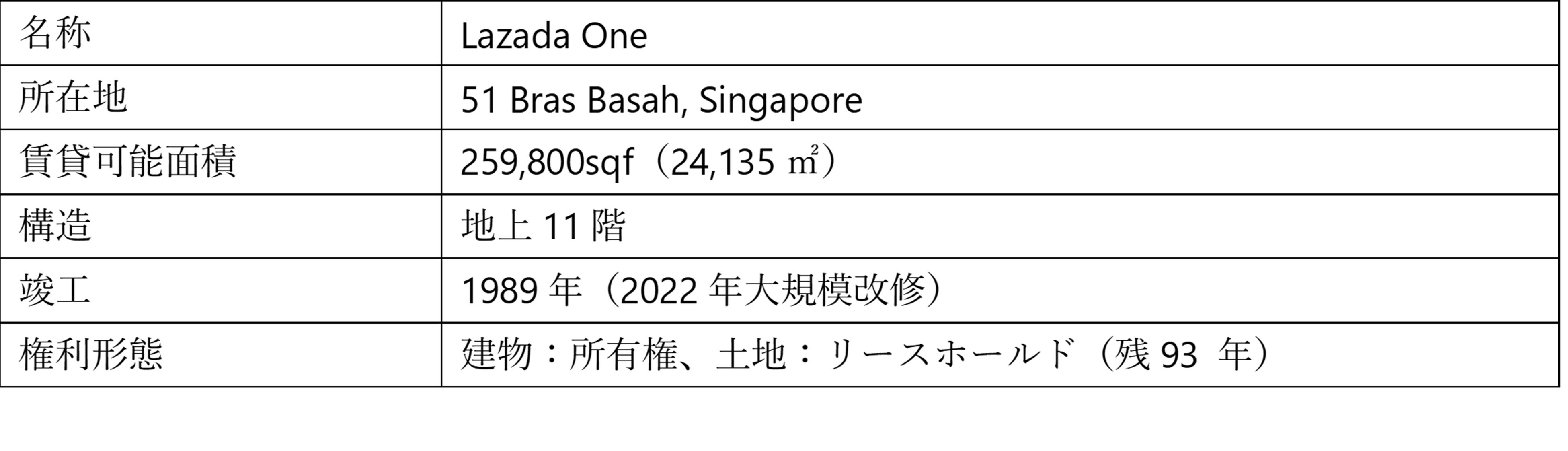 本投資の対象不動産は、商業地として定着した立地に位置することに加え、芸術・教育・文化施設も多いブラスバサー地区に所在する複合型オフィスビル「Lazada One」で、今般の共同投資により持分の50%を取得しました。地下鉄2駅に隣接し、アクセス、視認性、および知名度にも優れることから、大手eコマースや配信サービスなどのIT関連企業のほか、コワーキングスペースの大手事業者が主要テナントとして入居しています。