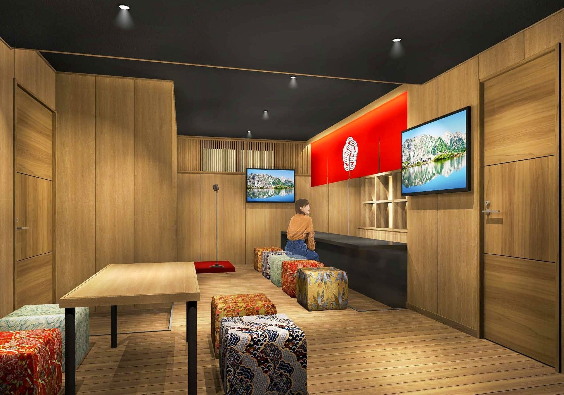 「旅先での一期一会を楽しむ場を」をコンセプトに、日本の伝統的な社交場であった「スナック」を現代風に再解釈。宿泊者限定の空間で、宿泊者同士やスタッフとの交流を楽しめる新スポットが誕生します。京都の伝統文化を感じるデザインと、心をほぐすお酒・カラオケをお楽しみいただきながら、ご寛ぎいただけるひとときを提供いたします。