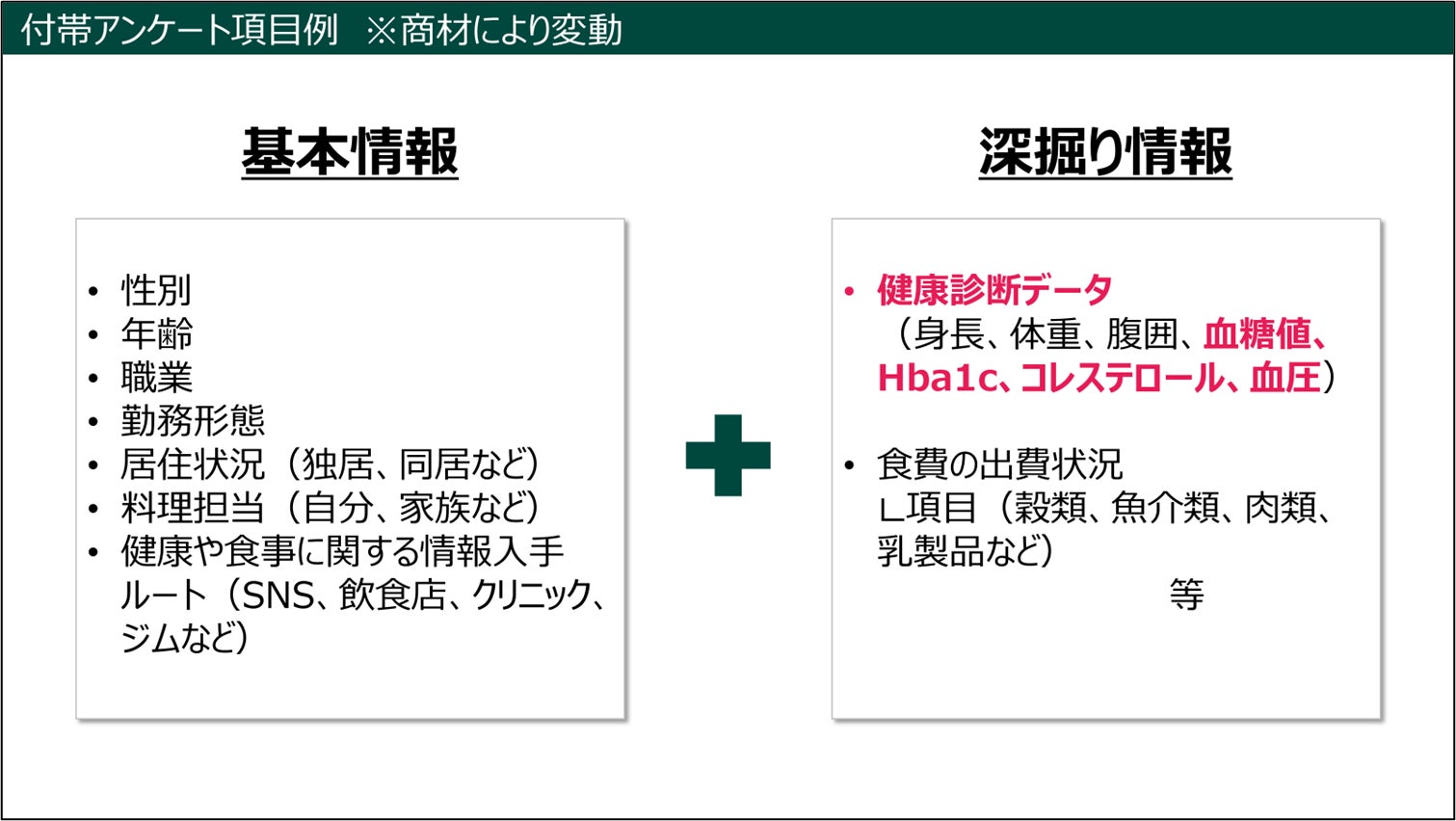 また、コラム記事視聴者とWEBセミナー参加者向けに実施する定量アンケートでは、通常の定量調査では実施が難しい健康診断データの収集も可能です。