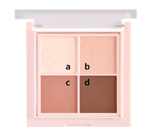 1. 右上(b)を上まぶたのベースとして広めに入れる。