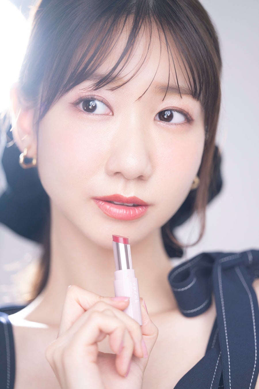ピンクと赤のちょうど真ん中くらいの絶妙な色で、私が一番なりたい理想の“大人カワイイ”を表現できる色に仕上げました。どんなメイクにも合うので、これを一本持っておけば間違いない!という自信作。ティントのように色持ちが良いところと、塗り方が調整しやすい質感もお気に入りポイント。一本でいろんな見せ方ができるので、シーンによって使い分けを楽しんでみてください!