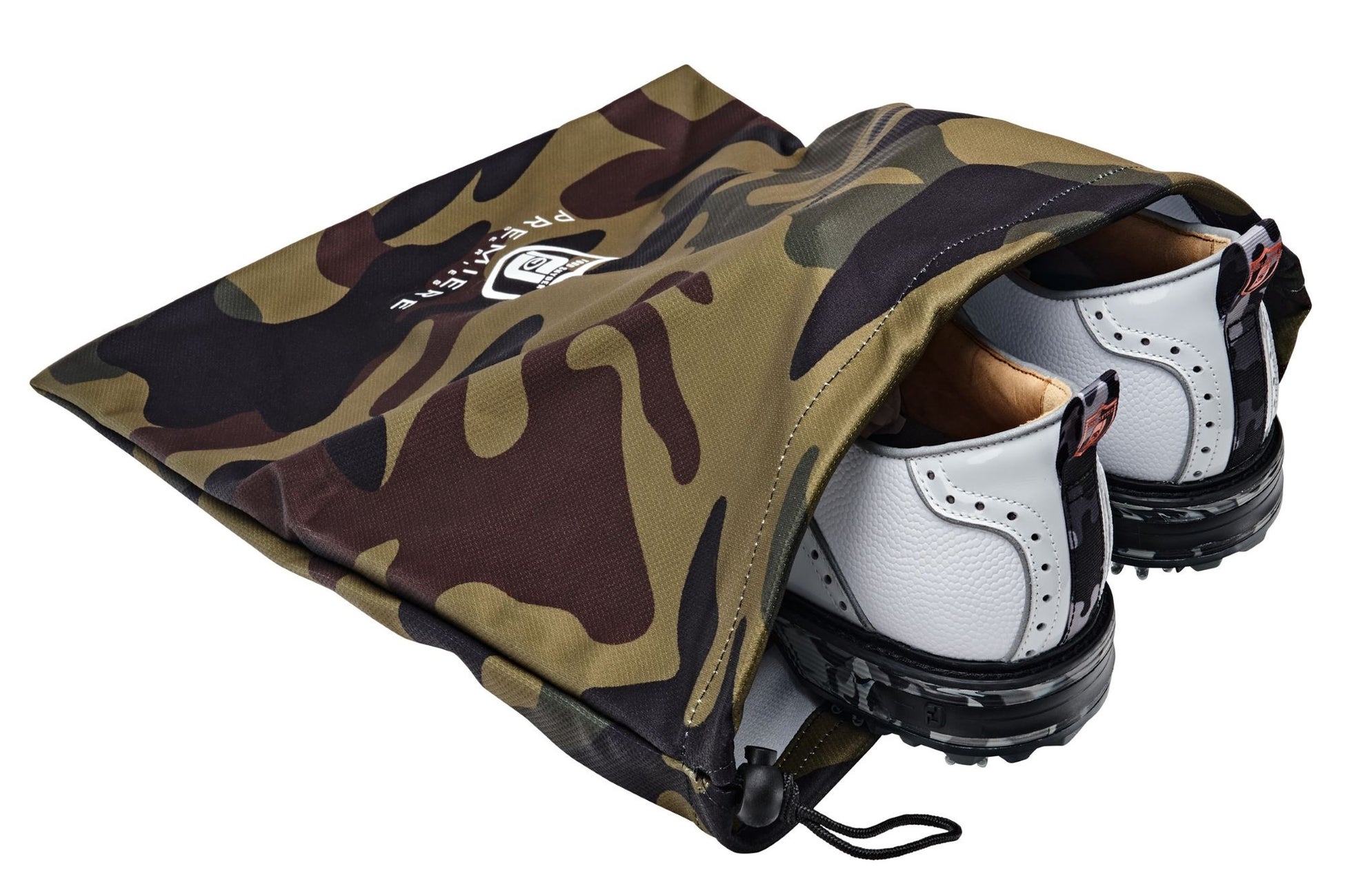 このコラボレーションの為だけに用意されたカモフラージュ柄にロゴを配した特別なシューズバッグをご用意いたしました。