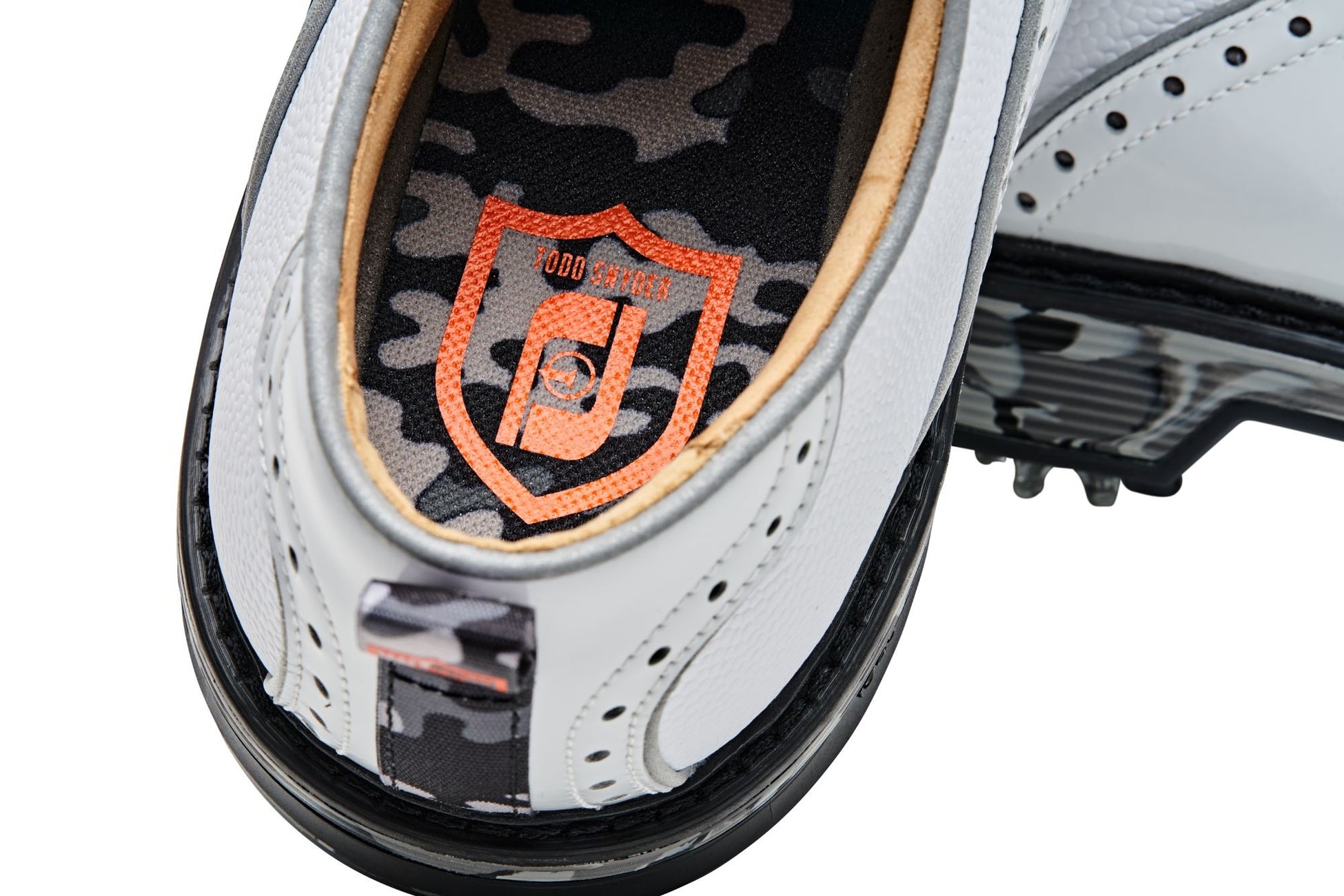 フットウェアは、パテントレザーと高級感のあるぺブルグレインレザーを使用し、シグネチャー独特のトーナルブラックカモフラージュをあしらったToddの細部へのこだわりを際立たせ、ツアーで戦う最高のプレーヤーの足元を飾るDRYJOYS Premiere Series Wilcox (ウィルコックス) と Field(フィールド) を発売。