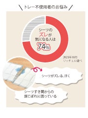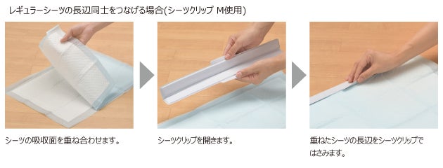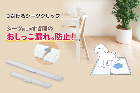 ワンちゃんを飼っている人のうち4割は、「トレーの手入れが面倒」、「トレーだと失敗する」という理由でトイレトレーを使用せず、ペットシーツのみを使用しています。トレー不使用者のうち、74%の人が「ペットシーツのズレが気になる」という困りごとを抱えています。※2シーツがズレることで、シーツのすき間からのおしっこ漏れに困る飼い主が多いことが分かりました。その様なユーザーの声に応えて、シーツ同士をしっかりつなげられるマグネットクリップ「つなげるシーツクリップ」を開発いたしました。「つなげるシーツクリップ」はマグネットで市販のトイレシーツのレギュラーサイズ、ワイドサイズをつなげられる2サイズ展開。シーツ同士をつなげることで、ズレを防ぎ、さらにシーツの交換回数を減らすことにもつながる経済的な便利グッズです。取り付けも挟むだけなので、簡単に使用できます。ペットにとっても飼い主にとってもストレスのない快適な環境づくりができるアイテムです。