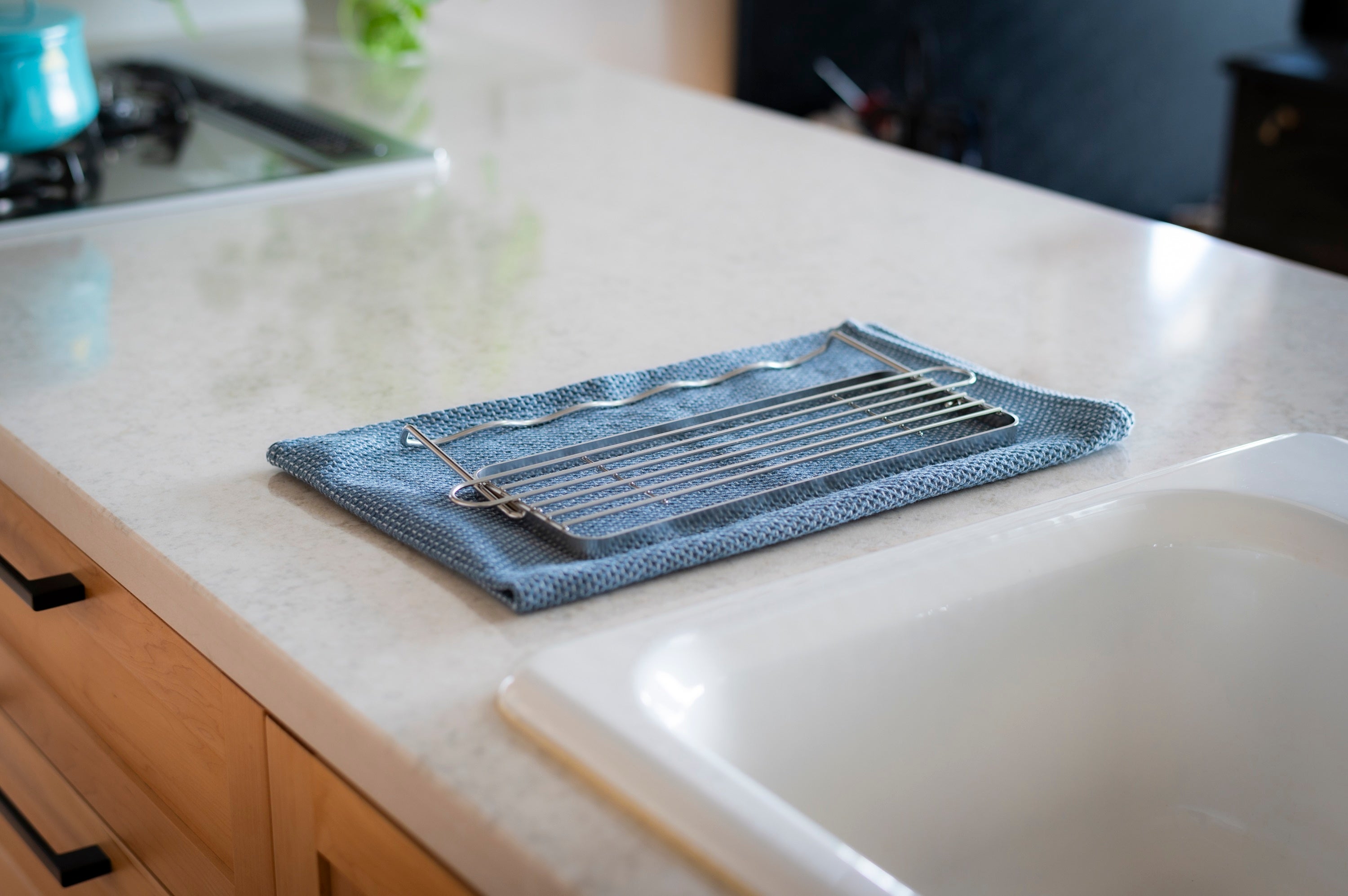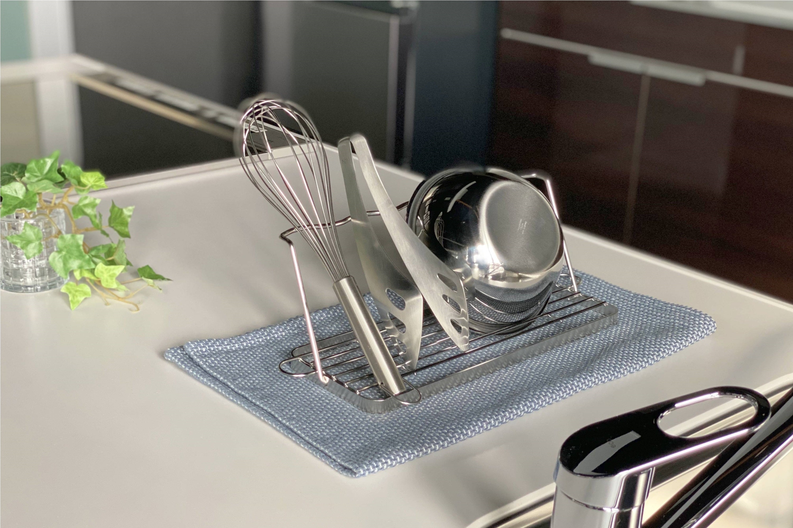 水切りかごを置いておかないという選択をしたご家庭が、近年SNS等の影響で増えました。水切りかごを置かず、吸水タオルの上に洗った食器を置いてすぐに片付ける。まさに「#すっきり暮らす」。ところが、吸水タオルは食器が立たないので、たくさんの食器を重ねられず、お皿を重ねて滑り落ちたり割れないか心配。結局水切りかごに戻したという声もありました。