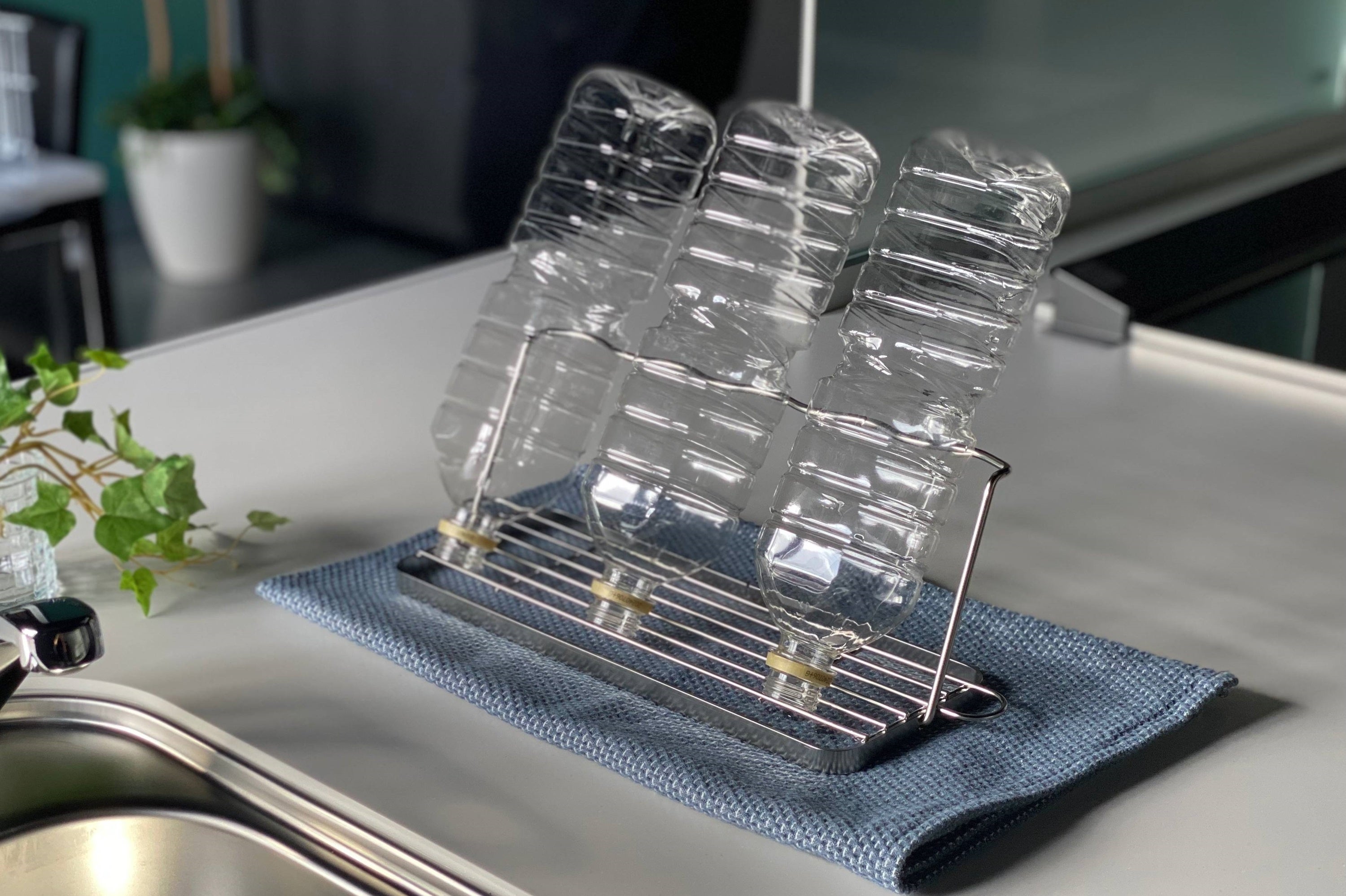 洗った水筒を乾かせる、たたんで片付けられる「すっきり暮らすジャグボトルスタンド」