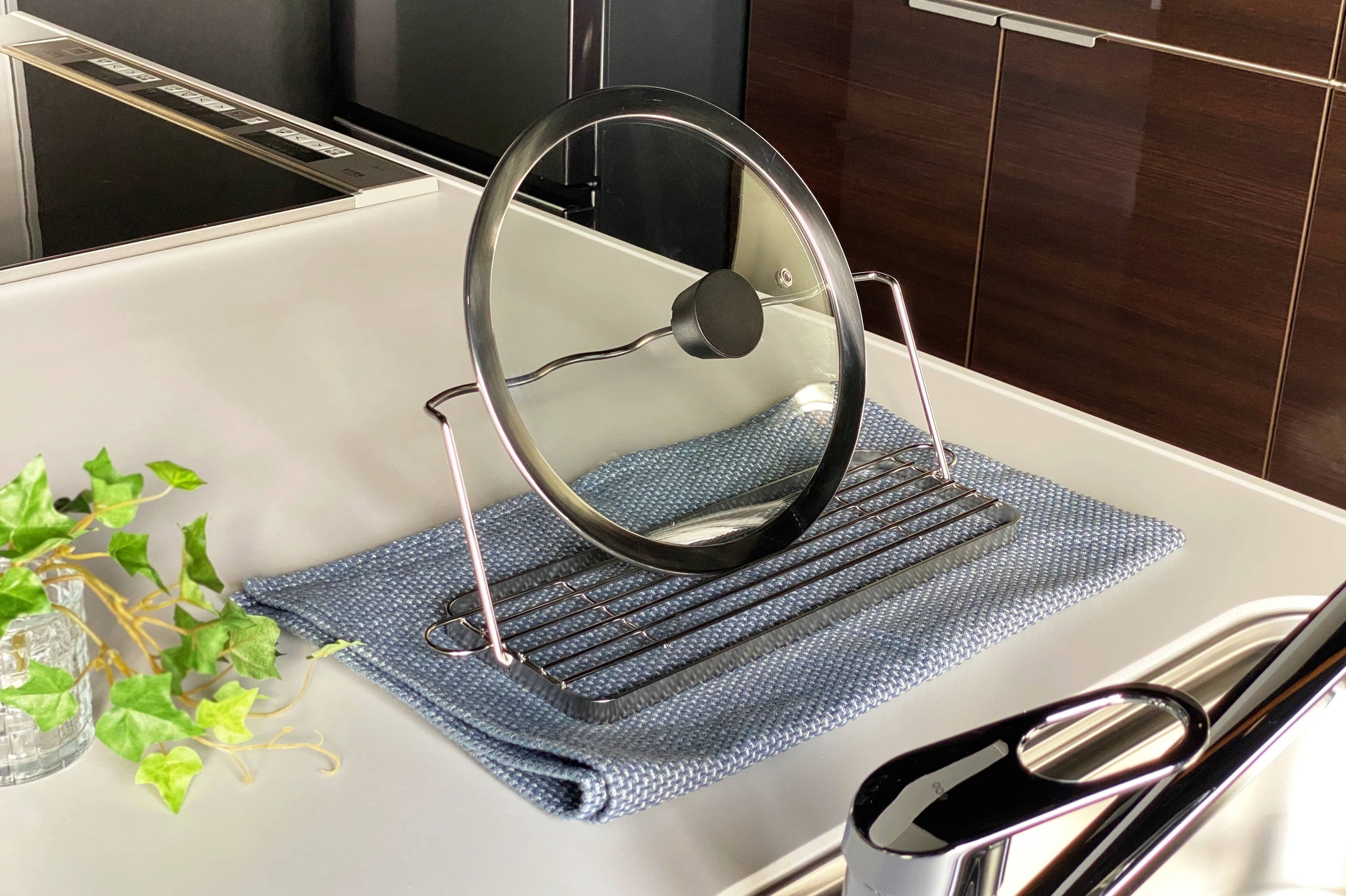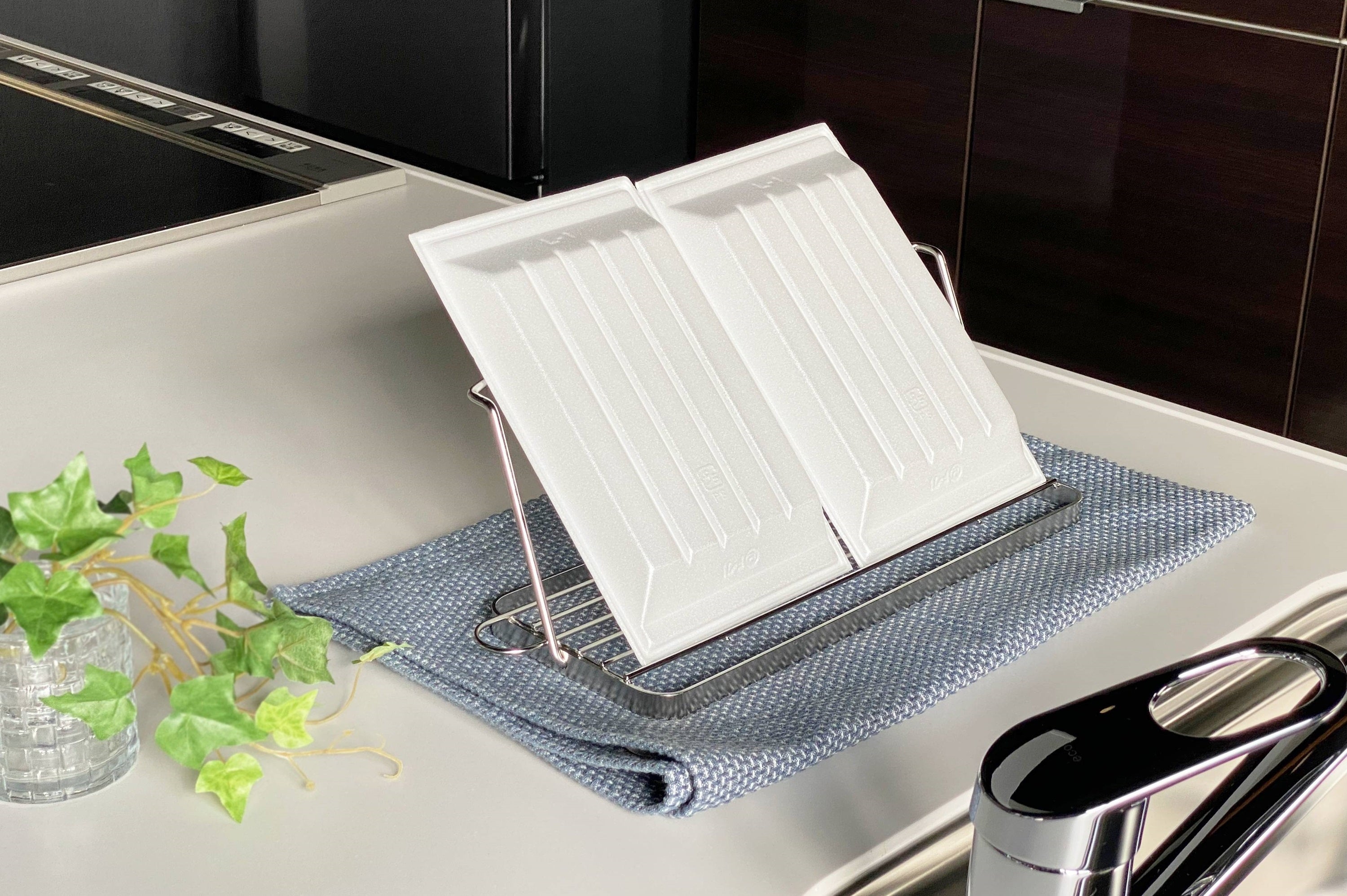 専用のスタンドは乾くのは早くなるものの、常に置き場所を確保しておかなくてはいけないというデメリットもあります。キッチンをすっきりさせておきたい人や、場所がなくて置けない、そんな方に嬉しいポイントは折りたたみ機能です。折りたたむことによって、お皿1枚分程度の高さになるので、使わないときはちょっとしたスペースに収納できます。