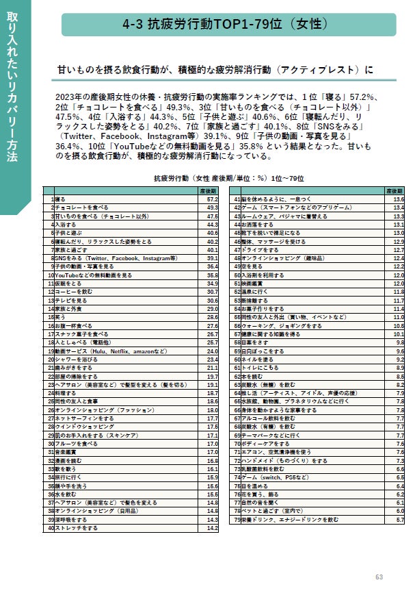 当プロジェクトの活動として、全国10万人の男女(20~79歳の男女各5万人)に実施した「ココロの体力測定2023」のデータを活用し、産前産後の男女のストレスや疲労状況や、子育てやパートナーへの意識の違いを、ジェンダード・イノベーションの視点で分析を行った「産後リカバリー白書2023」を作成、産後ケアの日(※)である3月5日に発刊いたします。