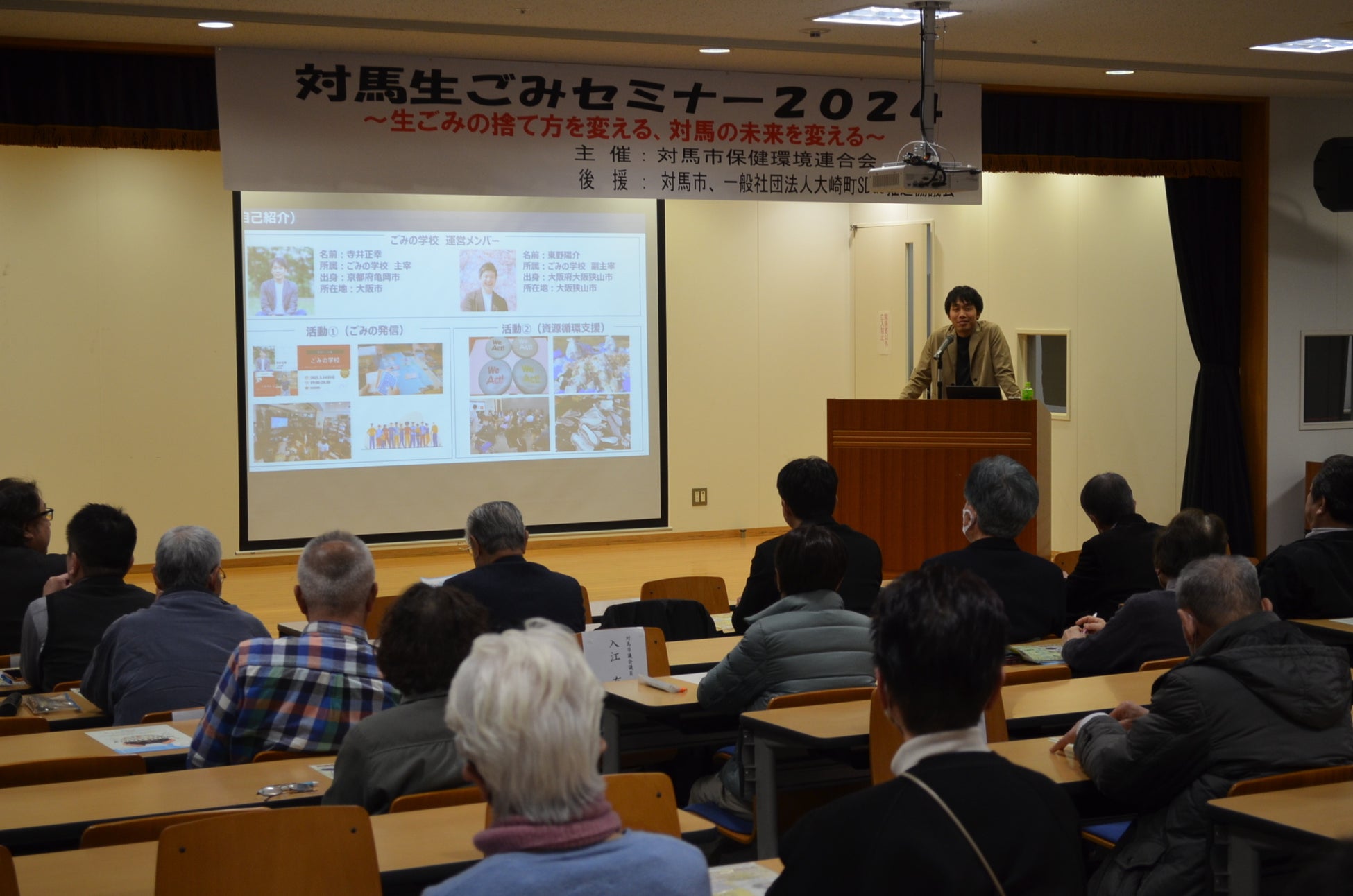 また、2024年2月17日(土)に長崎県対馬市で開催された「対馬生ごみセミナー2024~生ごみの捨て方を変える、対馬の未来を変える~」では、「ごみの学校」寺井正幸代表による講話のほか、寺井代表と大崎町SDGs推進協議会、対馬市環境政策課によるパネルトークなど、生ごみや食品ロスに関して考えるイベントとなりました。