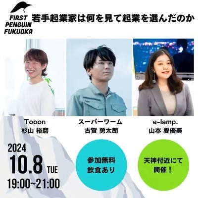 10月8日には、同じくKyushu Startup Gatewayのイベントとして「FIRST PENGUIN FUKUOKA vol.04 若手起業家は何を見て起業を選んだのか」を開催いたします。こちらは福岡での開催となります。