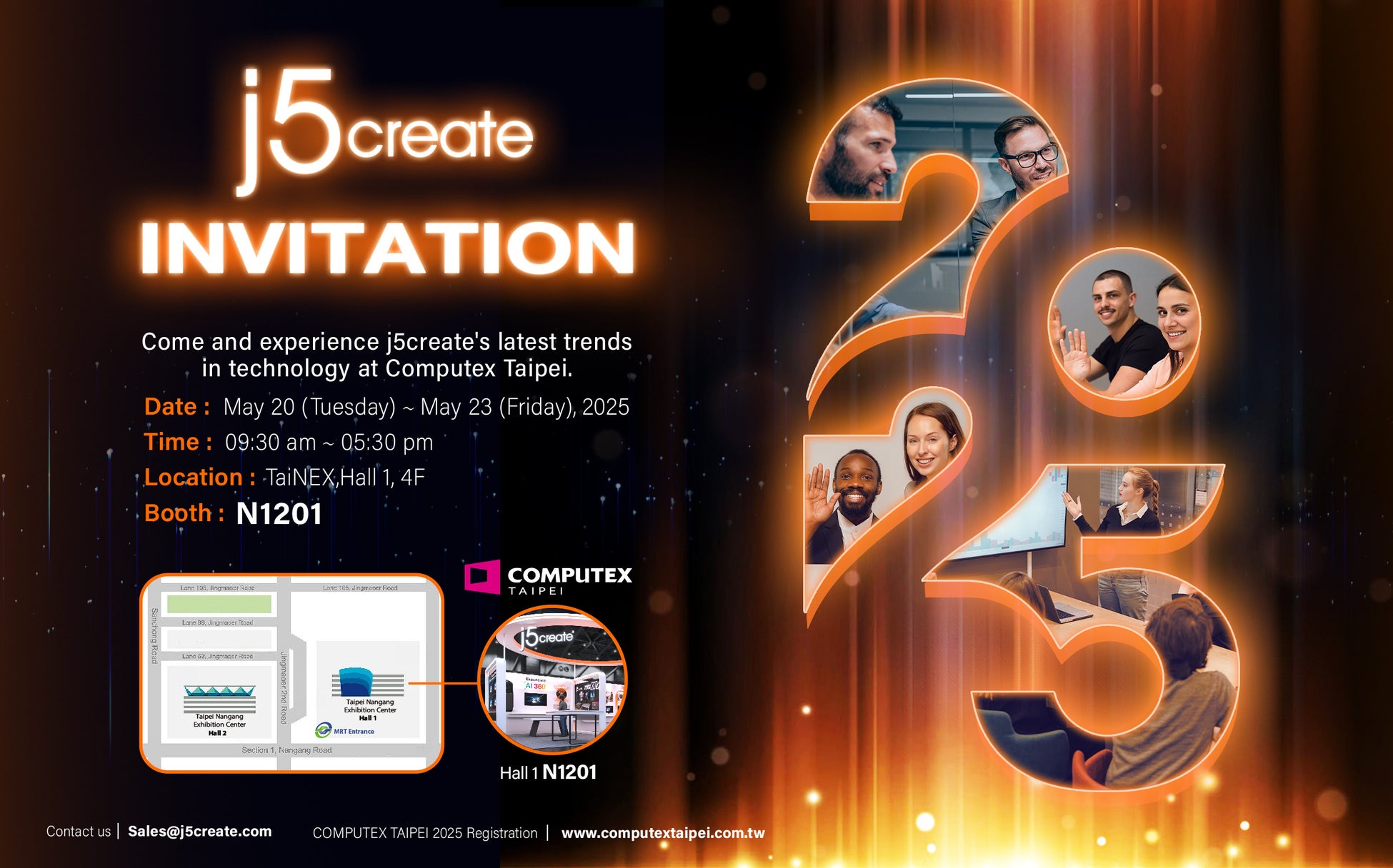2025年5月20日(火)~23日(金)、台湾台北で開催される「Computex」にj5createが出展いたします。グローバルなコンピューターおよびモバイル周辺機器ブランドのj5createは、開催期間中に最先端技術を搭載した多彩な新製品を発表します。ぜひ、弊社ブース(N1201)にお越しいただき、最新の革新的な製品をご覧ください。皆様のご来場を心よりお待ちしております。