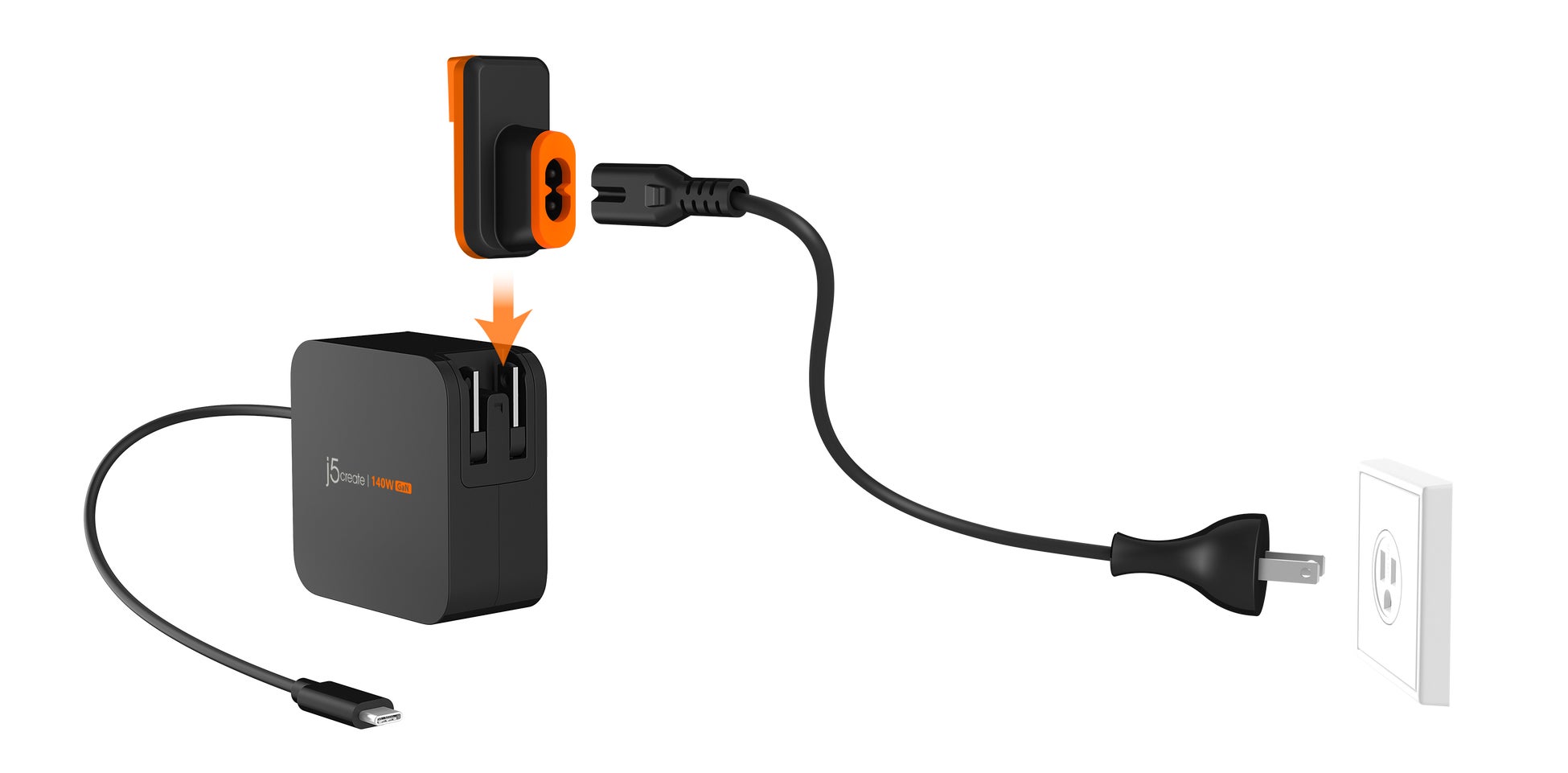次世代のパワーを、手のひらサイズで。最大140W出力のGaN急速充電器で、ノートPCからスマートデバイスまで同時にフルスピード充電。付属のAC延長キットで、設置も柔軟に。