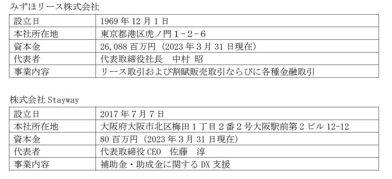 みずほリースはお客さまのGX投資の推進に際しての補助金活用という課題に対し、Staywayとの協業を通じて自社のサービス体制を高度化し課題の解決に努め、サステナブルな社会を目指してこれからも進んでいきます。