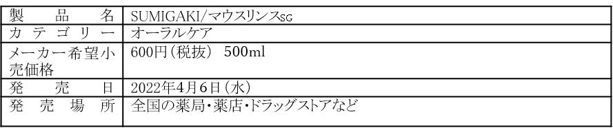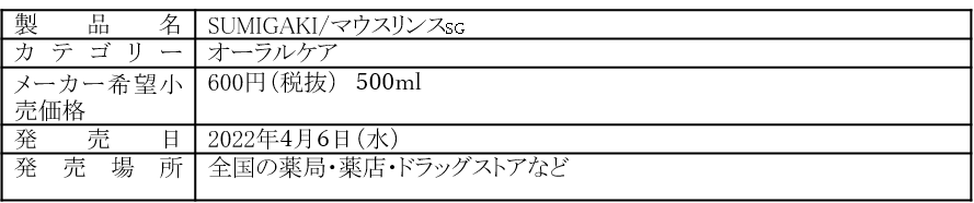 くり返す口臭に、“炭※1”で口を爽やかにするマウスリンスを『スミガキ』シリーズから新発売「SUMIGAKI/マウスリンスSG」~2022年4月6日(水)に新発売~