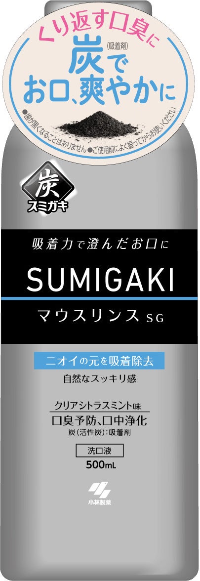 小林製薬株式会社(本社:大阪市、社長:小林 章浩)は、くり返す口臭に、“炭※1”で口を爽やかにするマウスリンス「SUMIGAKI/マウスリンスSG」(販売名:マウスリンスSG)を、4月6日(水)から新発売いたします。