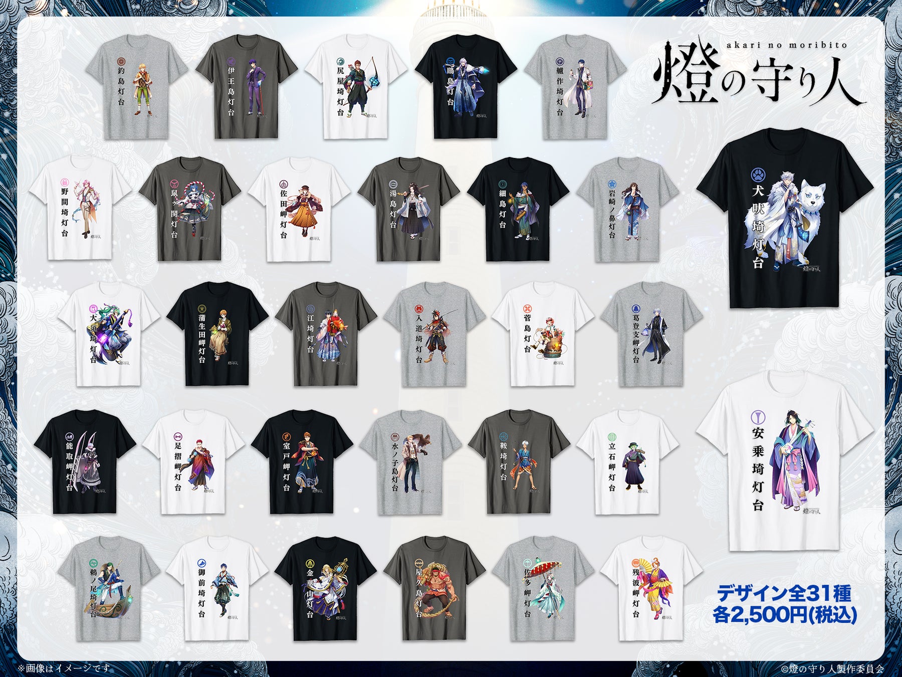 灯台擬人化プロジェクト『燈の守り人』新たに31灯台のイケメンキャラクターがTシャツとなって一斉登場!
