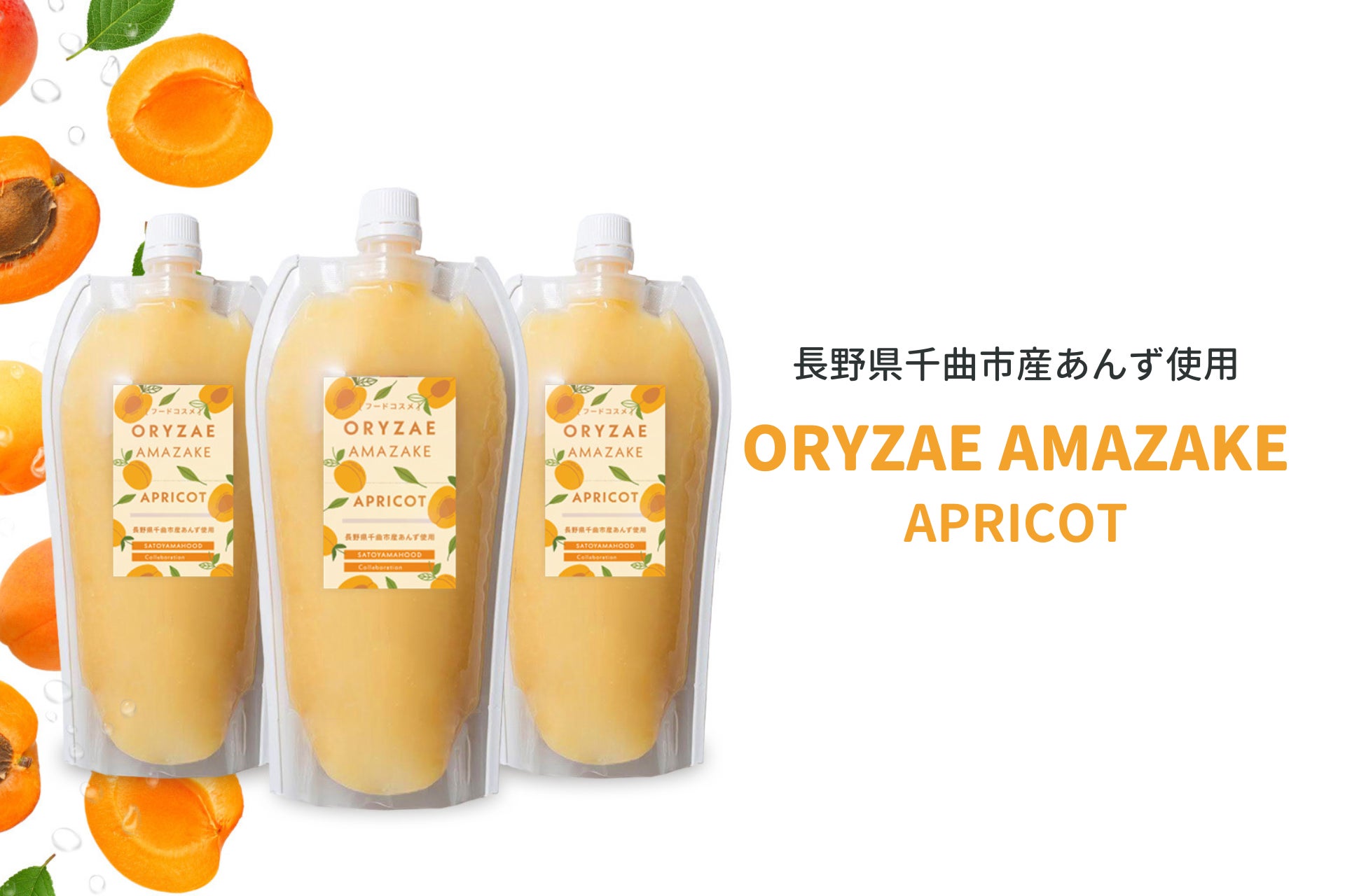 オリゼは、発酵技術を用いた米麹由来糖分「ORYZAE」によってコメの新たな需要を喚起し、コメ農家のサスティナビリティを担保することを目指して事業を展開しています。サトヤマフッドは、高齢化や人口減少などを背景に維持保全が困難になっている長野県千曲市「あんずの里」のあんず畑を、シェア農園という新しいかたちで未来へ残すことを目指した事業です。今回のコラボは、2社の「従来の方法にとらわれず、現代のライフスタイルにあった新しい方法による課題解決を目指す」というミッションが合致し、実現しました。