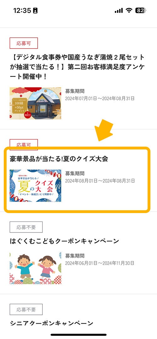 銚子丸公式アプリ内にある「イベント・抽選会」にてクイズ大会を開催いたします(全10問)。キャンペーン期間中、クイズにご回答ください。正解数に応じて、または抽選で、景品をプレゼントいたします。