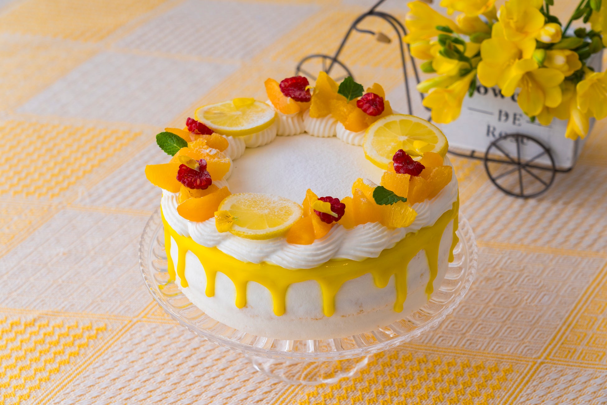 ケーキ側面のハニカム模様が目を引く「Bee’sチーズケーキ」は、コクのある卵黄クリーム、パータ・ボンプを合わせたフロマージュブランにパッションフルーツとマンゴーのジュレを合わせたムース。トップのレモンコンフィとエルダーフラワーのジュレが爽やかな1品です。スポンジ生地にはちみつとレモンの甘酸っぱいシロップを染み込ませ、アプリコットの果実を生クリームでサンドしたショートケーキ「アプリコットブーケ」、まるでエメンタールチーズのようなキュートなフォルムが目を引く「チーズ?チーズ!」は、ほのかな酸味のレアチーズケーキに、カルダモンで風味付けしたグアバとはちみつのジュレがアクセントになり、見た目とのギャップも楽しいケーキです。