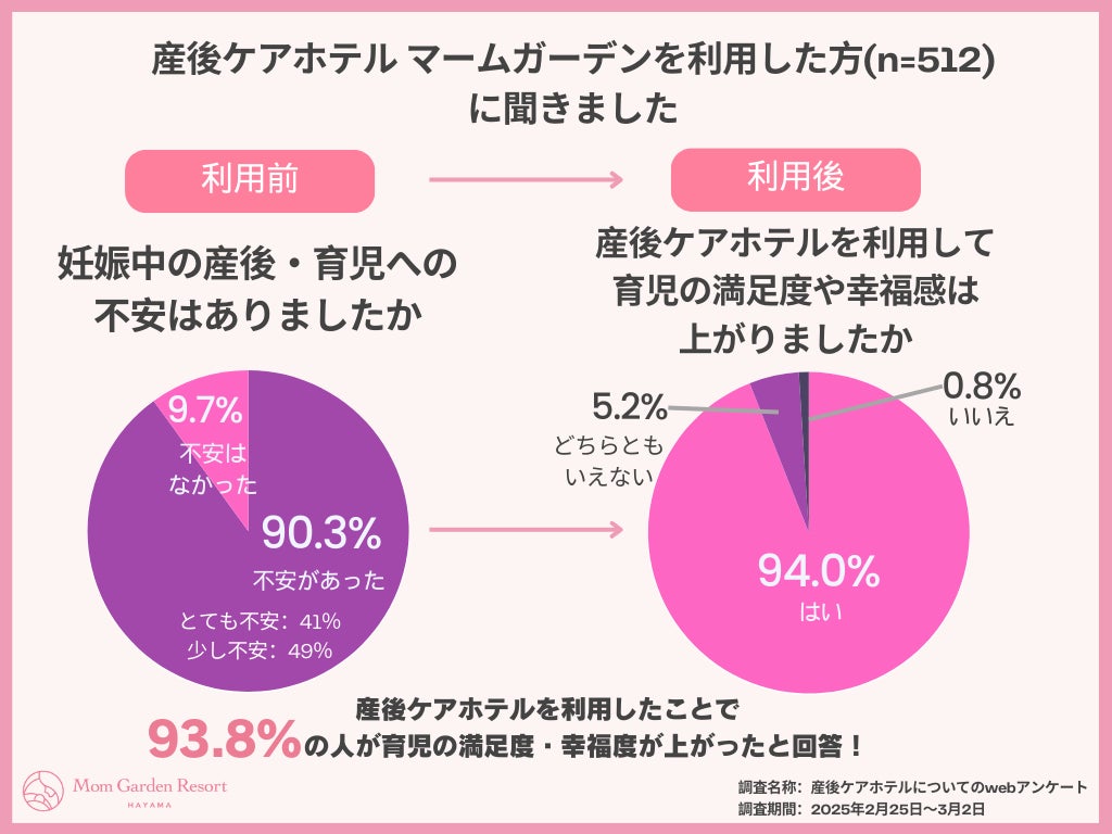 ■産後ケアホテル利用後、94%の人が育児の満足度・幸福度が向上