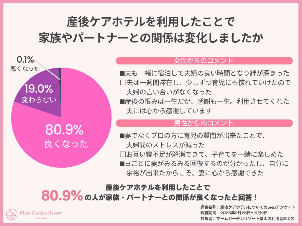 産後ケアホテルを利用したことで家族やパートナーとの関係は変化しましたか
