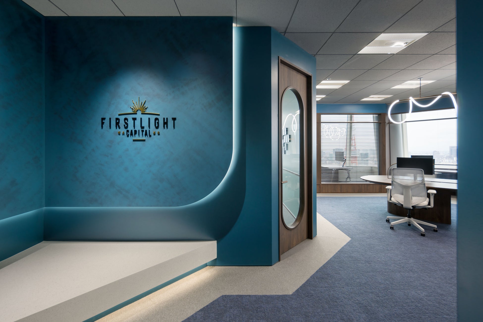 オフィス内には、ファーストライトとしての歩みを象徴するアートワークを配置。多様な色彩と光を駆使し、ファーストライトと起業家の無限の可能性を象徴したアートワークや、大地から昇る太陽の光をイメージしたアートフラワーが、新しい道を切り拓く力強さと希望を表現しています。