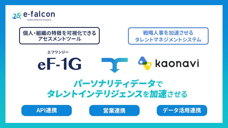 株式会社イー・ファルコン(本社:東京都千代田区、代表取締役:田中 伸明、以下 イー・ファルコン)が提供する「適性検査eF-1G(エフワンジー)」は、株式会社カオナビ(本社:東京都渋谷区、代表取締役社長CEO:佐藤 寛之、以下 カオナビ)が提供するタレントマネジメントシステム「カオナビ」とAPI連携を開始します。
