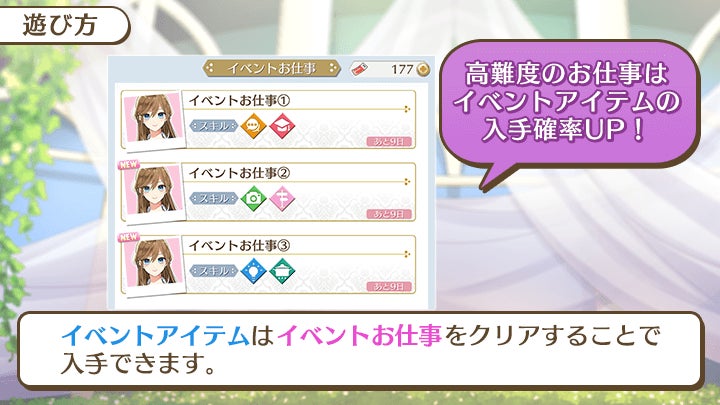 難易度の高いお仕事ほど「ブーケ」の入手確率と個数がUPします!