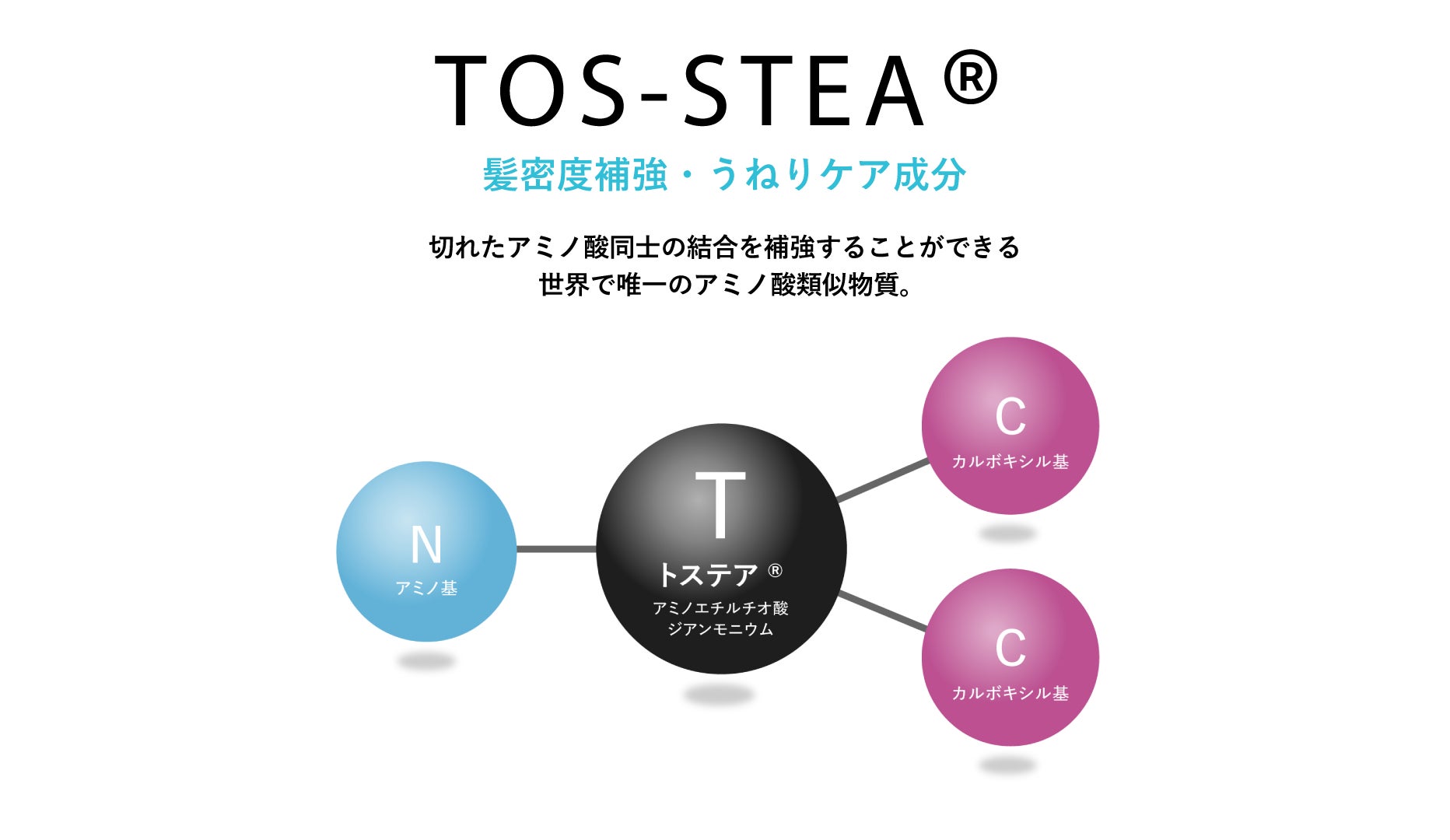 うねりケアに対して高い有用性が確認されている次世代補修成分トステア®*1をシャンプー、トリートメントそれぞれに高配合*2しました。