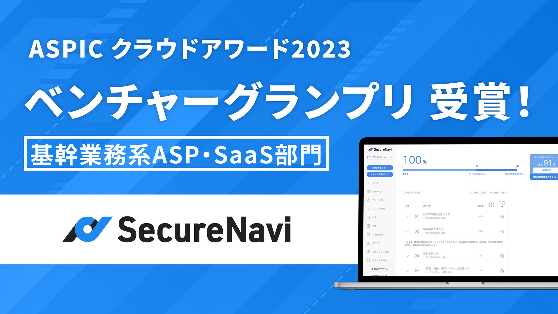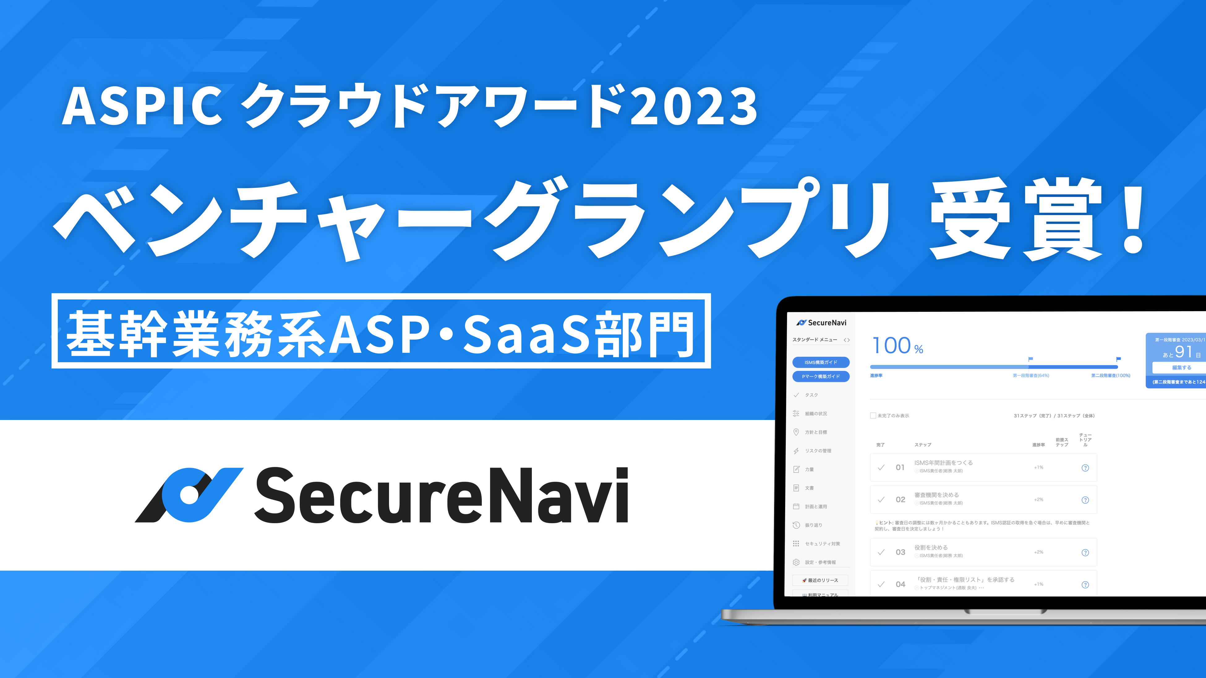ASPICクラウドアワード2023「基幹業務系ASP・SaaS部門」にてSecureNaviがベンチャーグランプリを受賞
