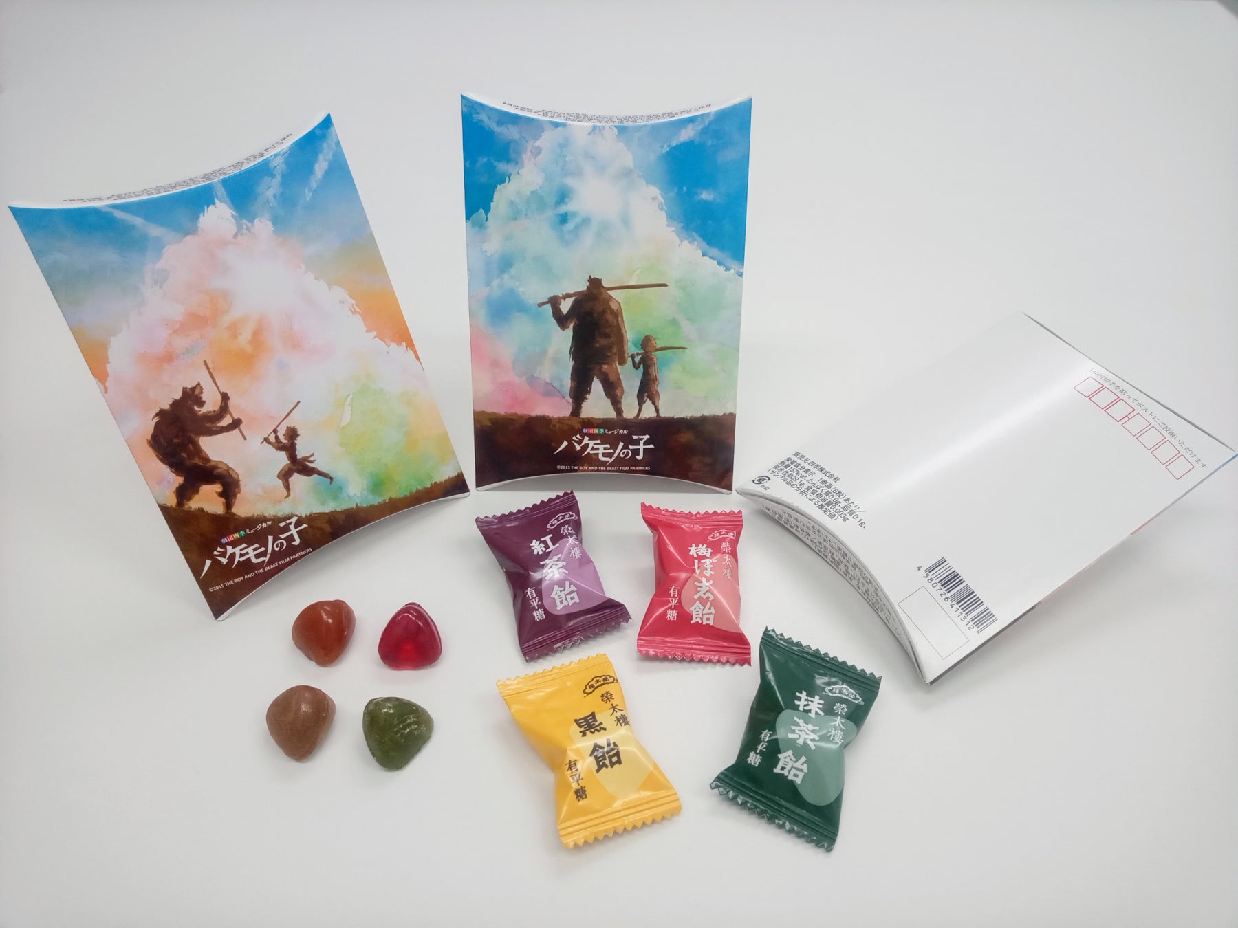 携帯電話やメールが全盛の時代に、なぜハガキをと思われるかもしれませんが、大切な人を思って書く時の尊さ、一生の記念に残る、そんな魅力がハガキにはあります。ミュージカル『バケモノの子』を鑑賞して感動された想いと一緒に、昔ながらのハガキで榮太樓飴と共に大切な人へお届けしてみてはいかがでしょうか。