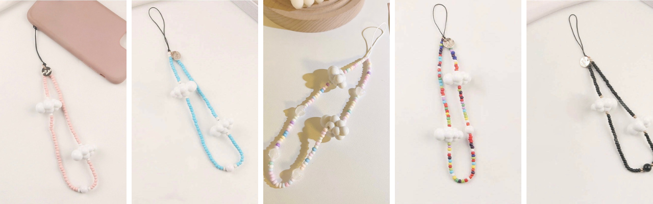 ⑧「雲で編んだ」落下防止ビーズストラップ 各 780円(税込)